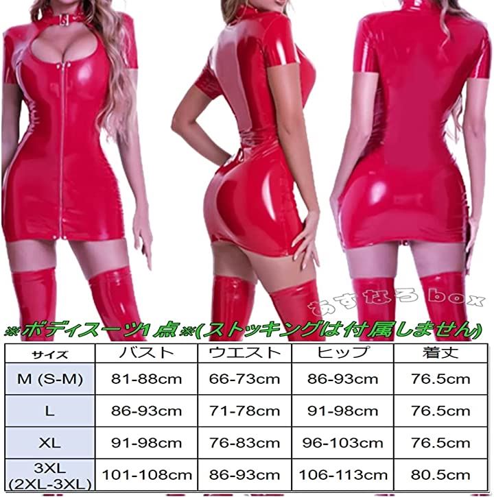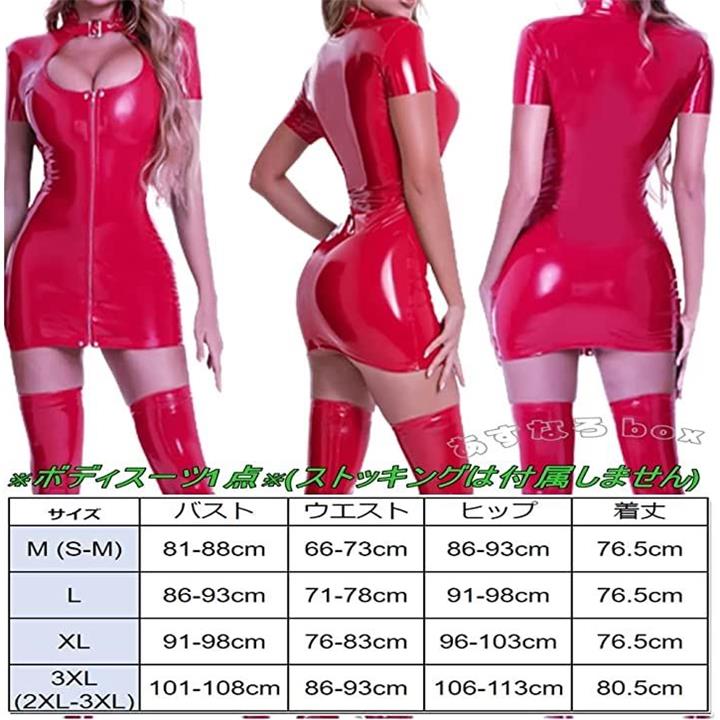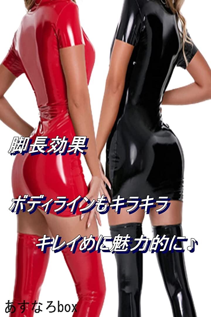 [あすなろbox] エナメル レースクイーン 光沢 胸元セクシーワンピース 美胸 フロントファスナー 美脚 ミニ ボディコン ワンピース |
