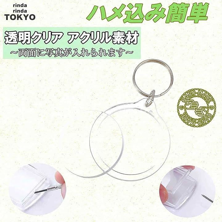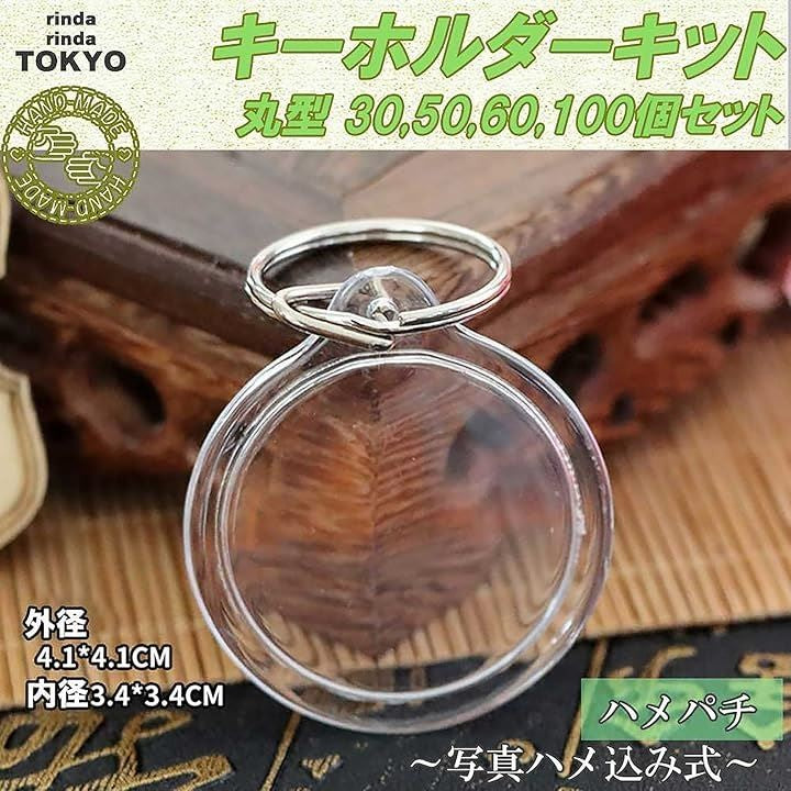 rinda キーホルダー 写真 入れ 丸 丸型 30個 50個 60個 100個 カットテンプレート 台紙付 アクリル フォト フレーム ハンドメイド 手作り パーツ ハメパチ 作成キット