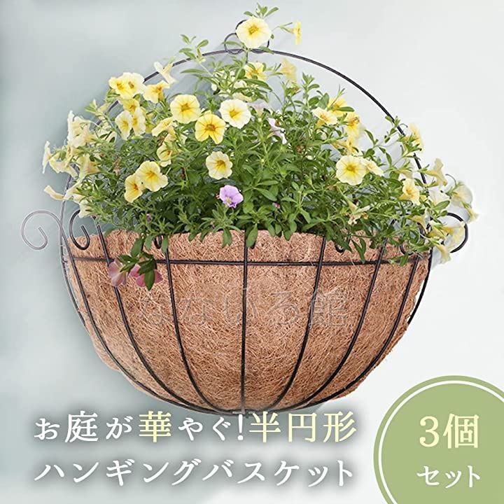 半円形 ハンギングバスケット 3個セット 寄せ植え プランター 壁掛け 屋外 フェンス 花 植物 ガーデニング