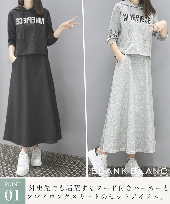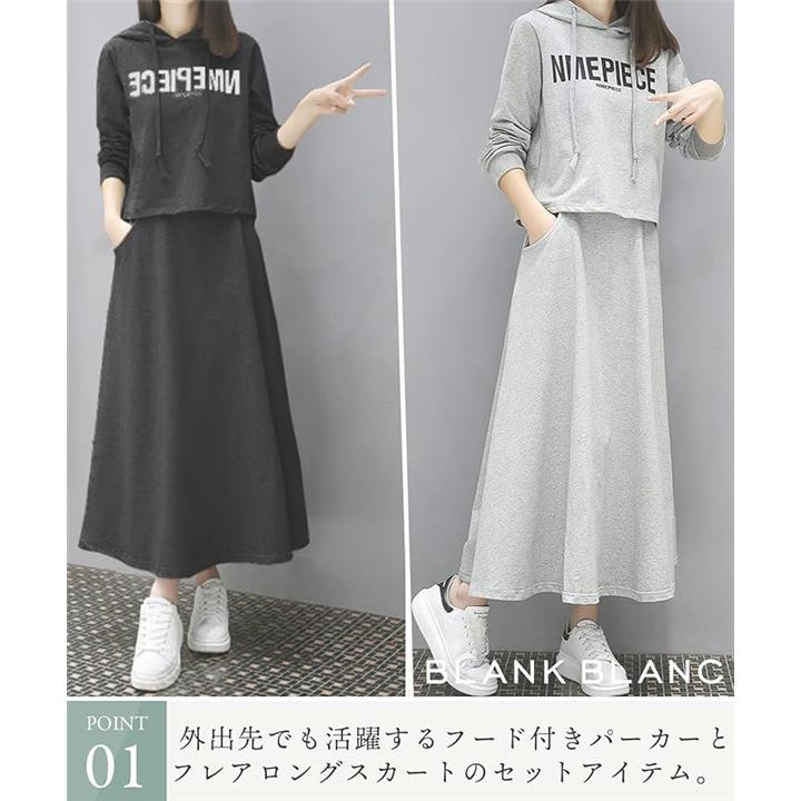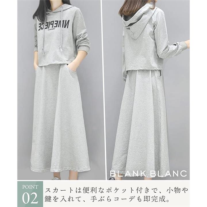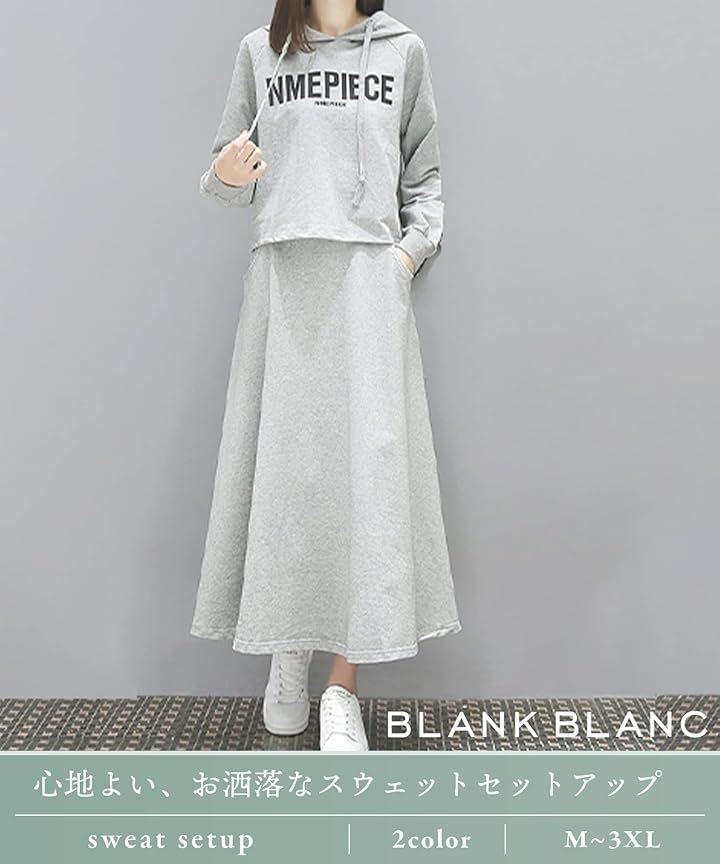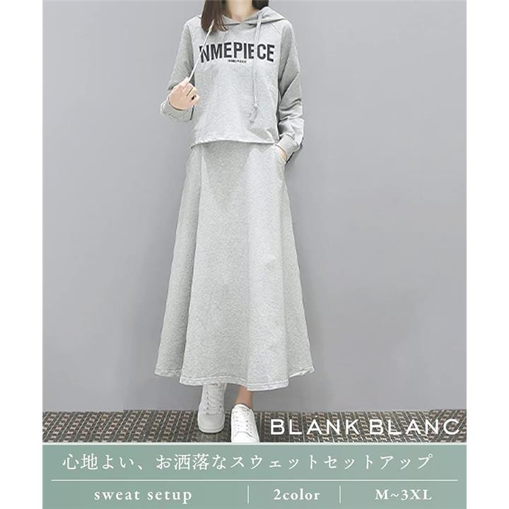 [BLANK BLANC] ブランクブラン セットアップ 2点 セット パーカー スウェット トップス ロング スカート ルームウェア 上下セット ロゴパーカー おおきいサイズ 2着セット 体型カバー 着やせ 着痩せ 薄手 ジャージ上下 スエット 2S-B13 |