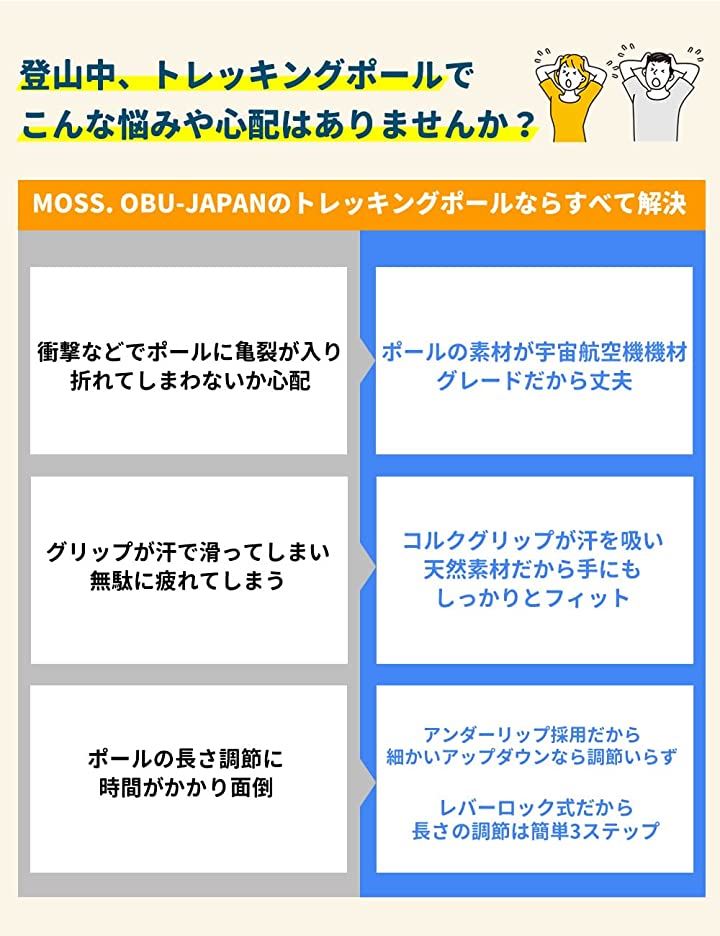 MOSS. OBU-JAPAN のトレッキングポールならお悩み解決。