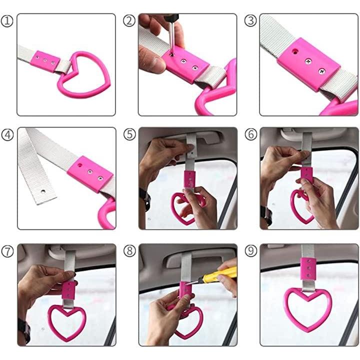 車用 吊り革 街道レーサー 旧車 リアバンパー ドレスアップ ハート型 ブラック/レッド
