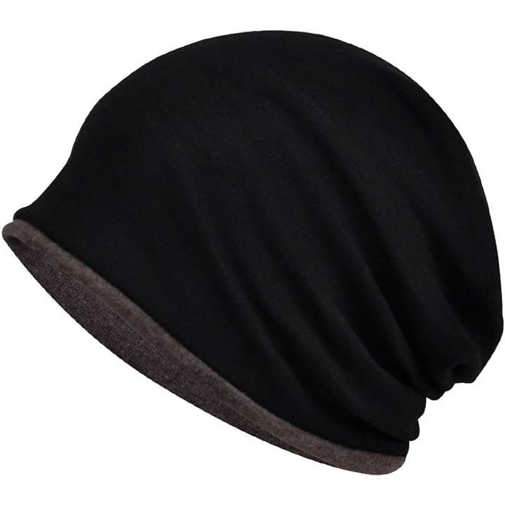 帽子 メンズ レディース ニット帽 コットン リバーシブル ワッチ(ブラック/コーヒー) |
