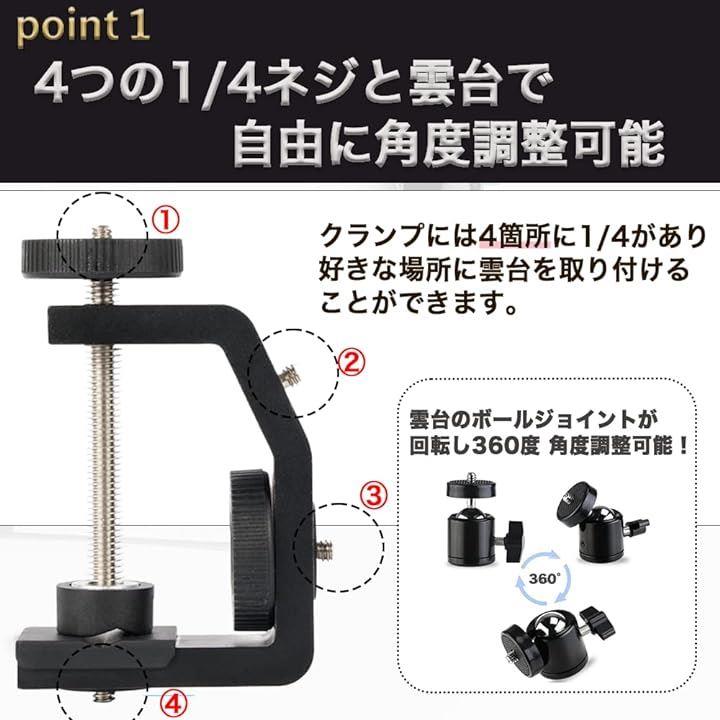 カメラ クランプ 雲台 セット 1/4ネジ 一眼レフ デジタルカメラ 対応
