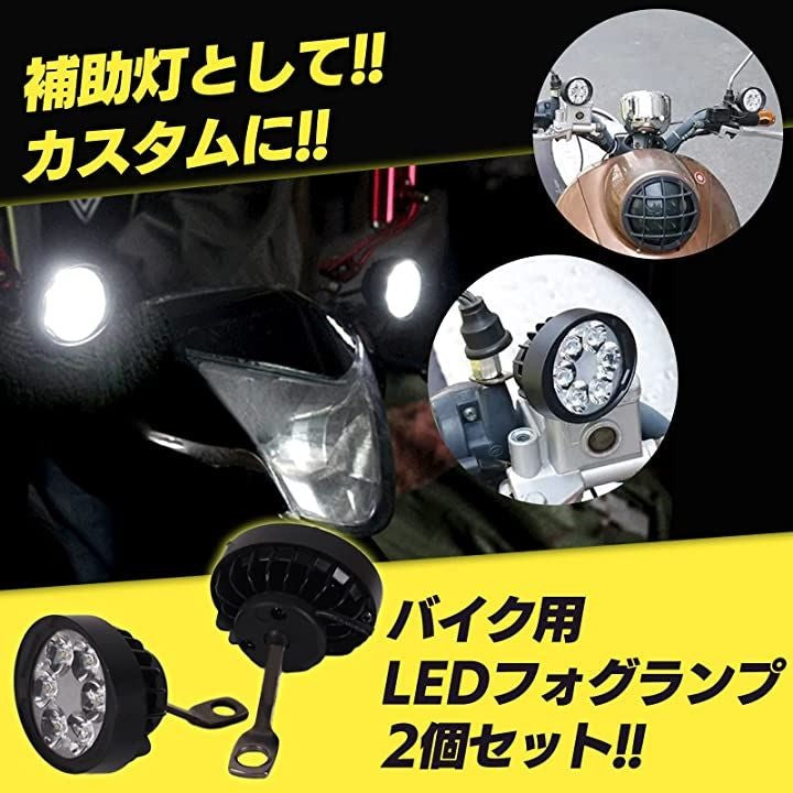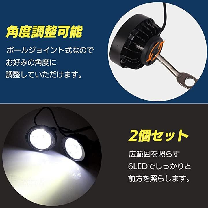 LED フォグランプ バイク 用 ハンドル ボールジョイント 調整 6LED M10 10mm ミラー 共締 取付 汎用