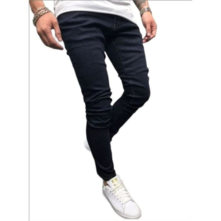 ジーンズ デニム パンツ ストレッチ スキニー ロング 丈 ウォッシュ ボトムス ダメージ 加工 M ブラック
