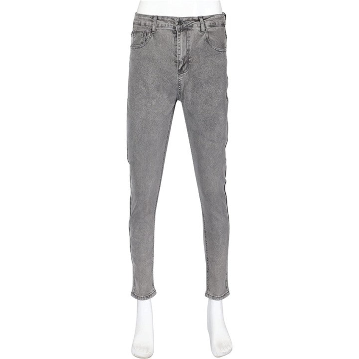 ジーンズ デニム パンツ ストレッチ スキニー ロング 丈 ウォッシュ ボトムス ダメージ 加工 XL グレー