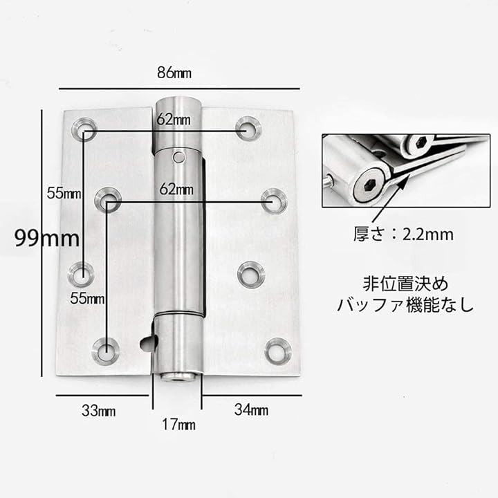 スプリング蝶番ドアバット丁番 ヒンジ ステンレス製 2個入