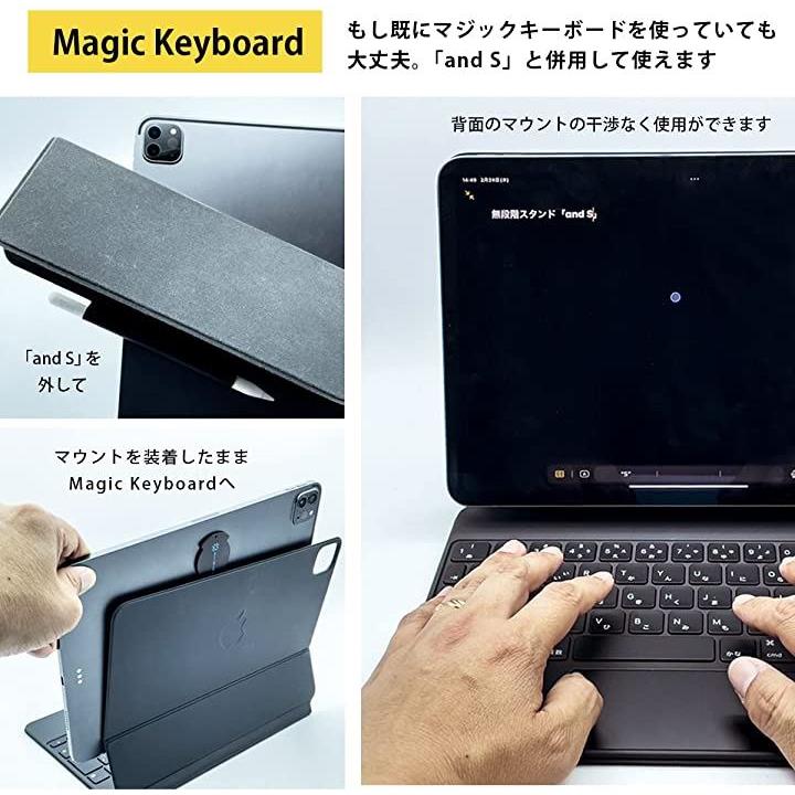 「andS」を外して、マウントがiPad背面に装着した状態でも「マジックキーボード」へ装着が可能です。