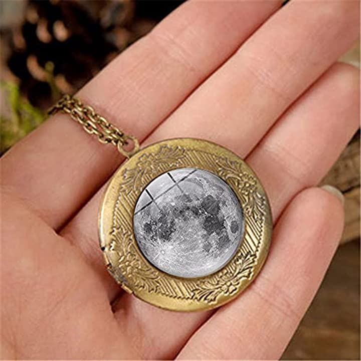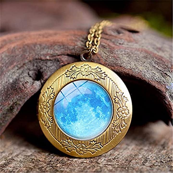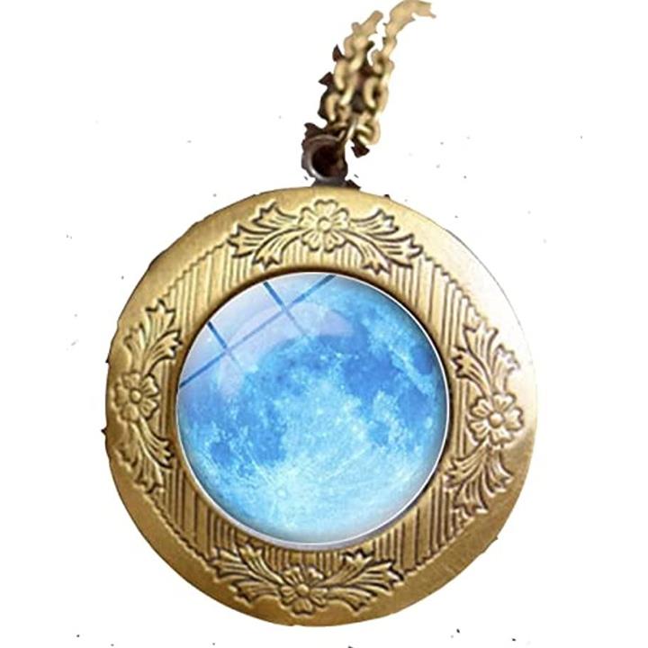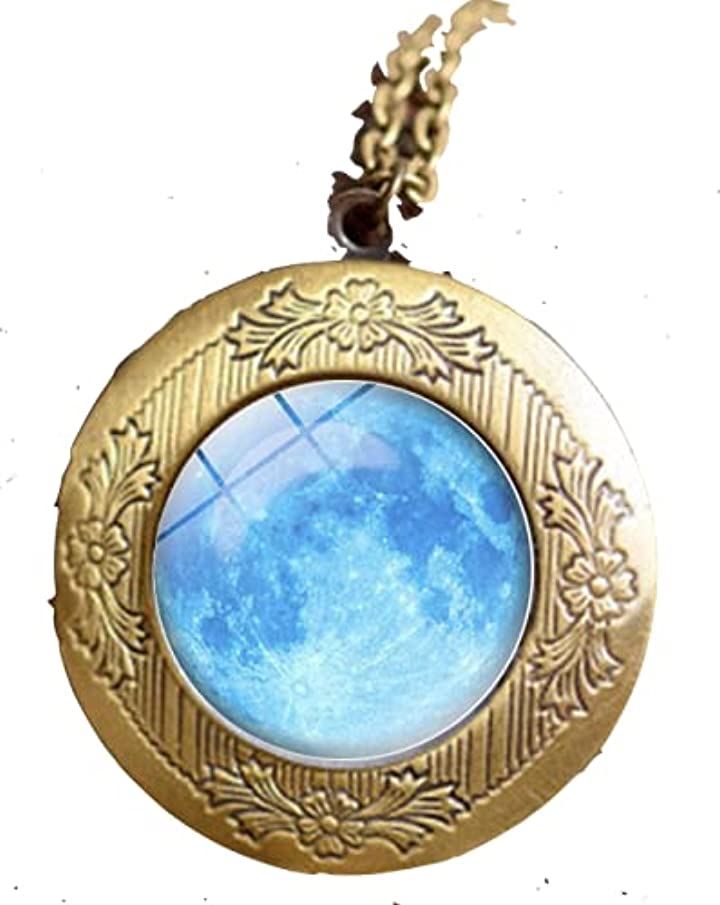 ペンダント ネックレス 月 地球 星座 アンティーク 夜行 蓄光 首飾り 青