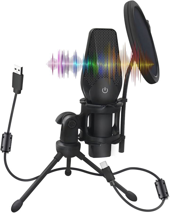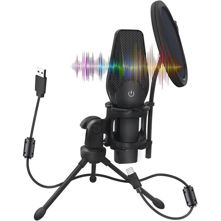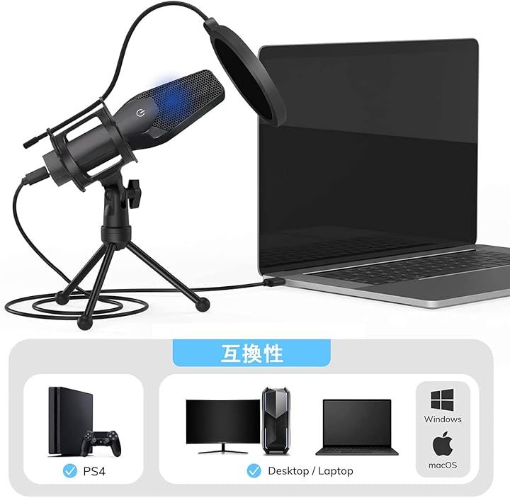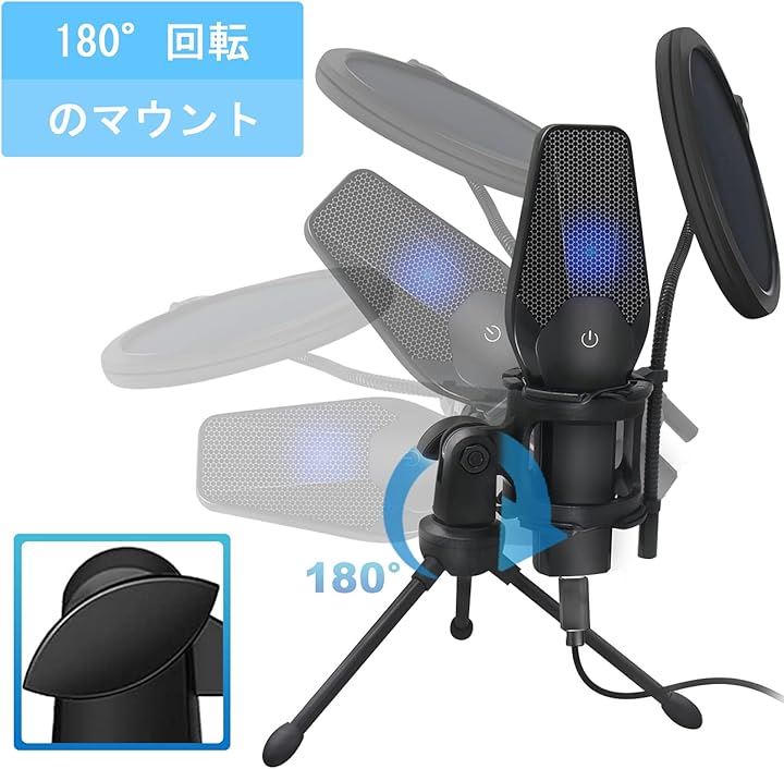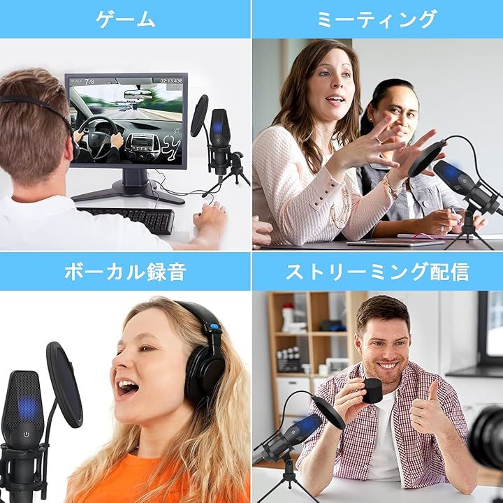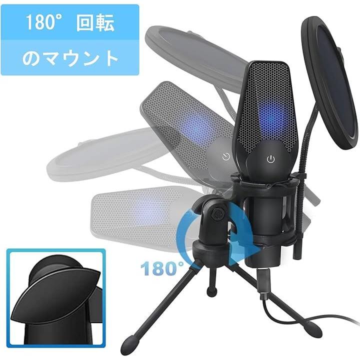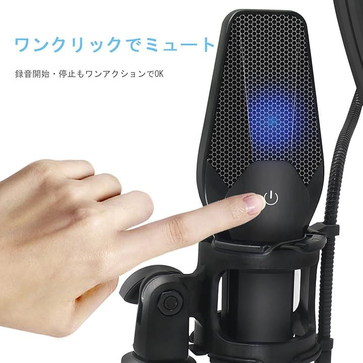 コンデンサーマイク USB PC ゲーミングマイク 配信用マイク ワンタッチミュート機能 卓上マイク 日本語取扱説明書