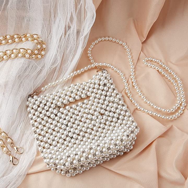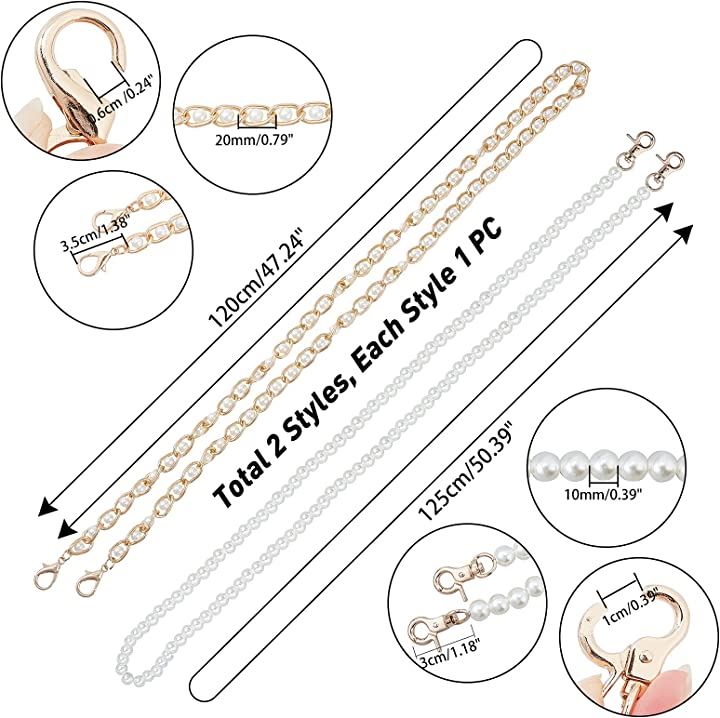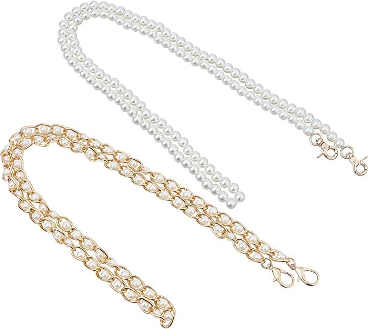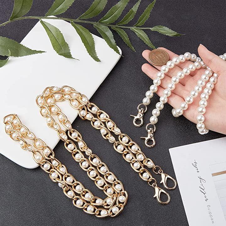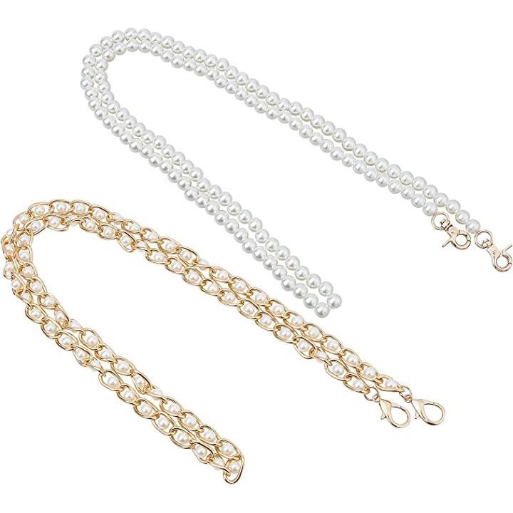 2本 パールストラップ 交換用 バッグチェーン パールビーズハンドル パール飾り 肩掛けチェーン