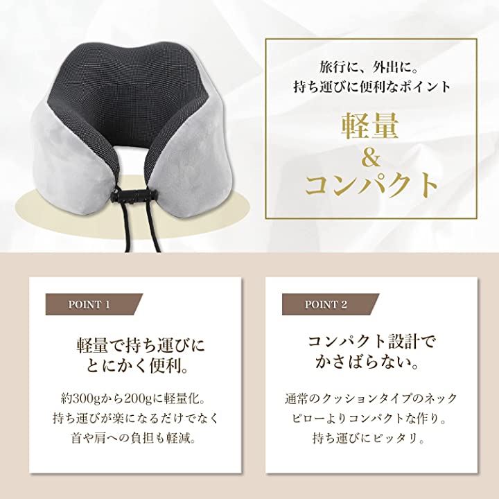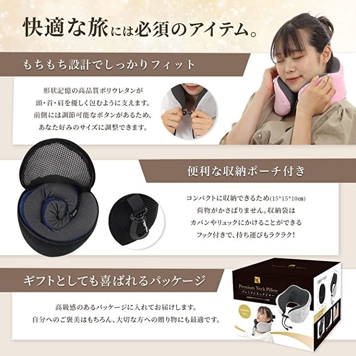 プレミアムネックピロー コンパクトタイプ トラベルピロー 首枕 低反発 携帯枕 旅行枕 持ち運び お昼寝 飛行機 新幹線 バス