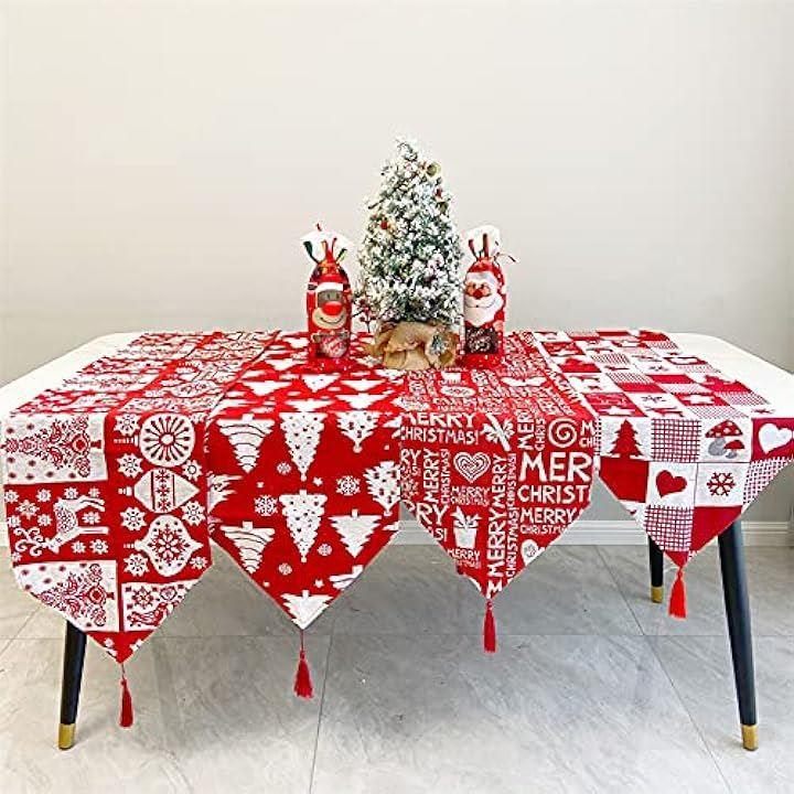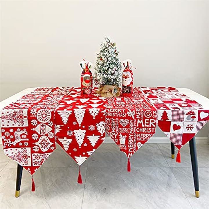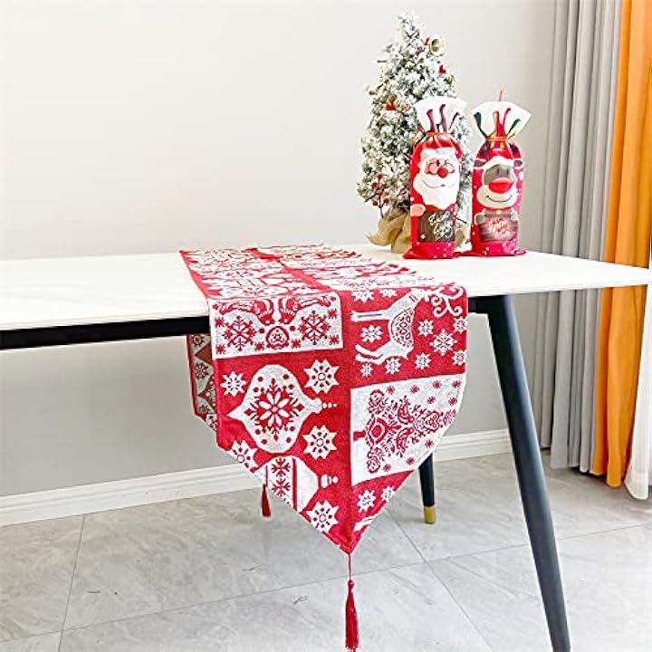 クリスマス テーブルランナー デコレーション テーブルクロス テーブルカバー 北欧風 33x180cm レッド 滑り止め 丸洗い