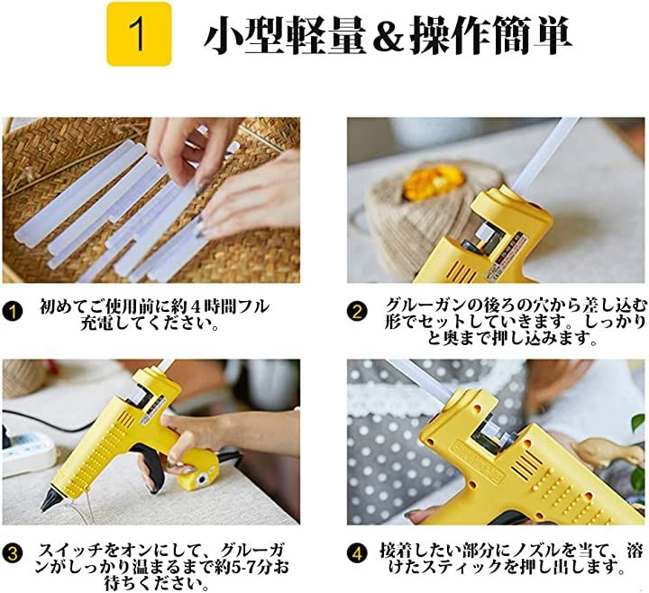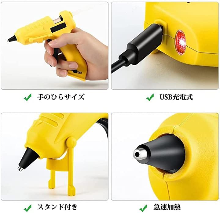 グルーガン コードレス USB充電式 小型 軽量 粘着 接着剤 高品質スティック10本付き