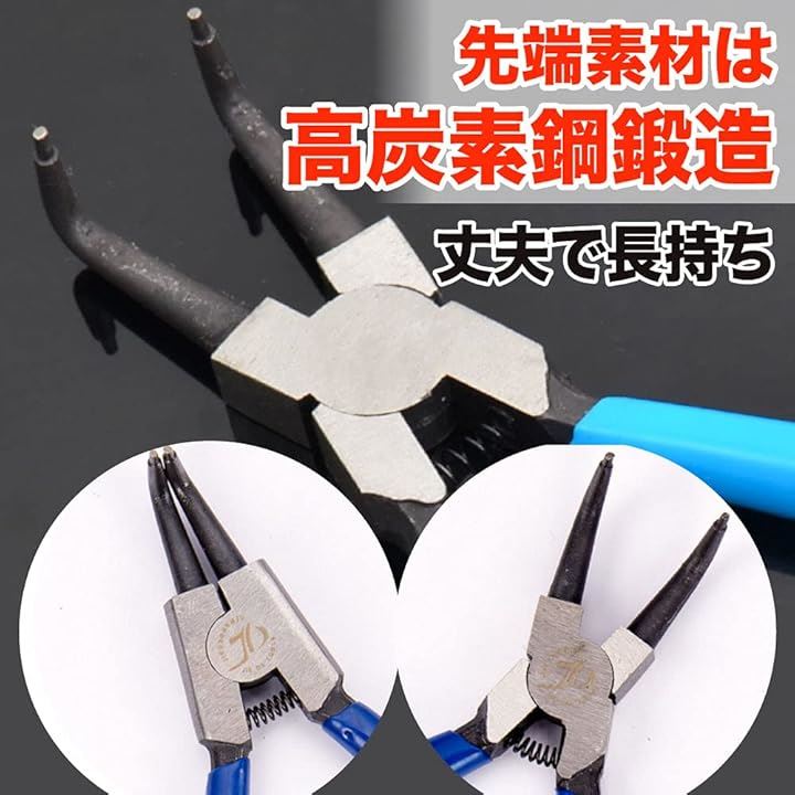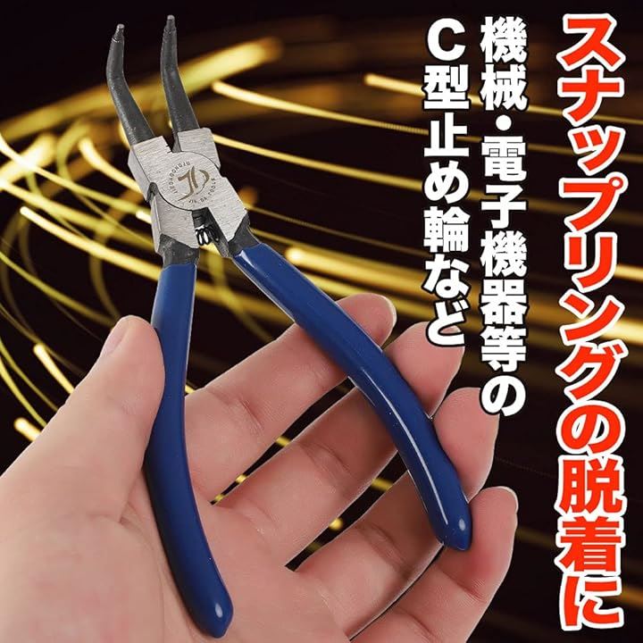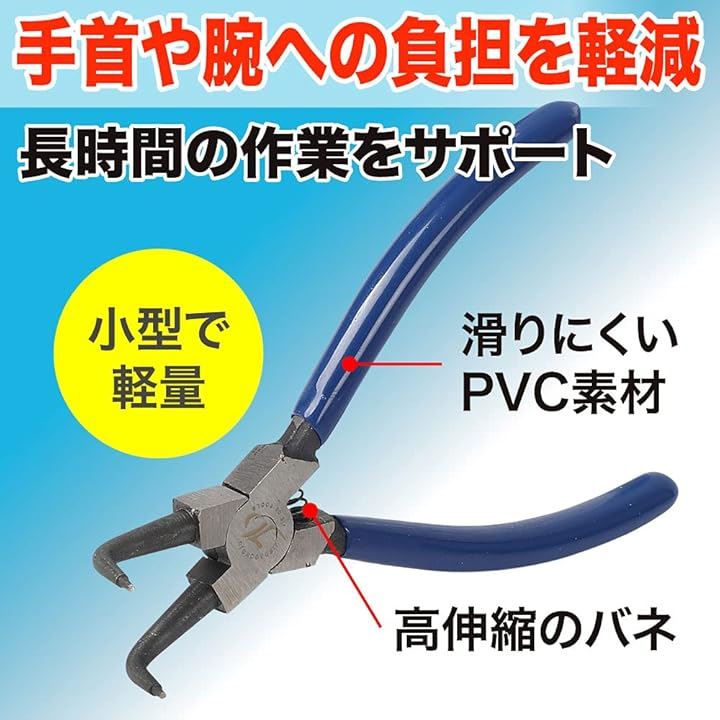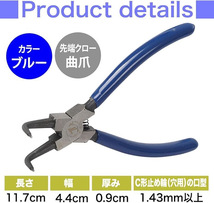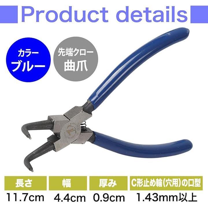 スナップリングプライヤー 曲爪 軸用曲爪 C型止め輪着脱 バネ付き 穴用 工具 作業 修理 先端径1.43mm