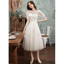 ミモレ丈 パーティードレス 細身 ウエディングドレス 綺麗 かわいいし 結婚式 編み上げ ワンピース 姫系ドレス 手作り 刺繍 スパンコール装飾 ホワイト L