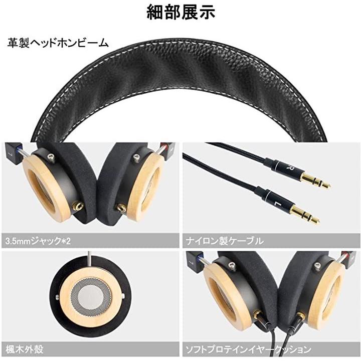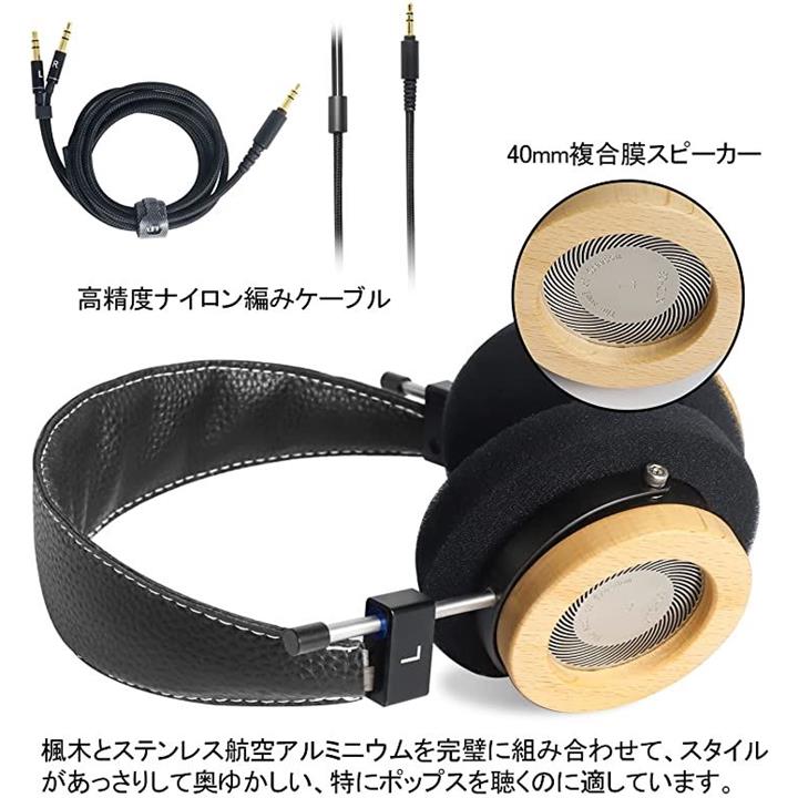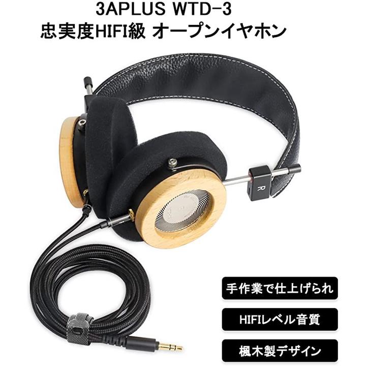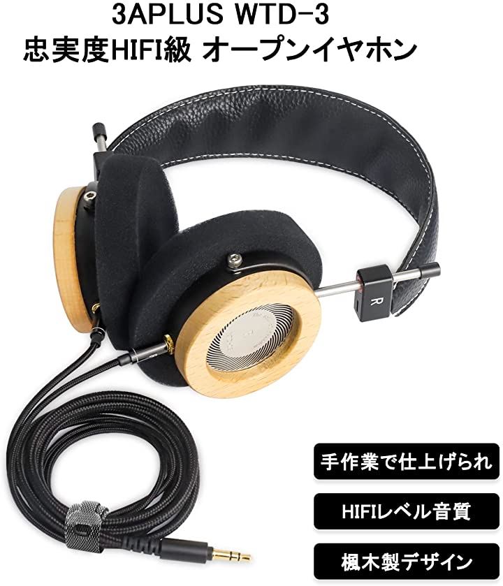 互換品 WTD-3 ヘッドホン 有線 開放型 ヘッドフォン オンイヤーヘッドフォン 木製 ハイレゾ 高精度ナイロン編みケーブル 1.5m