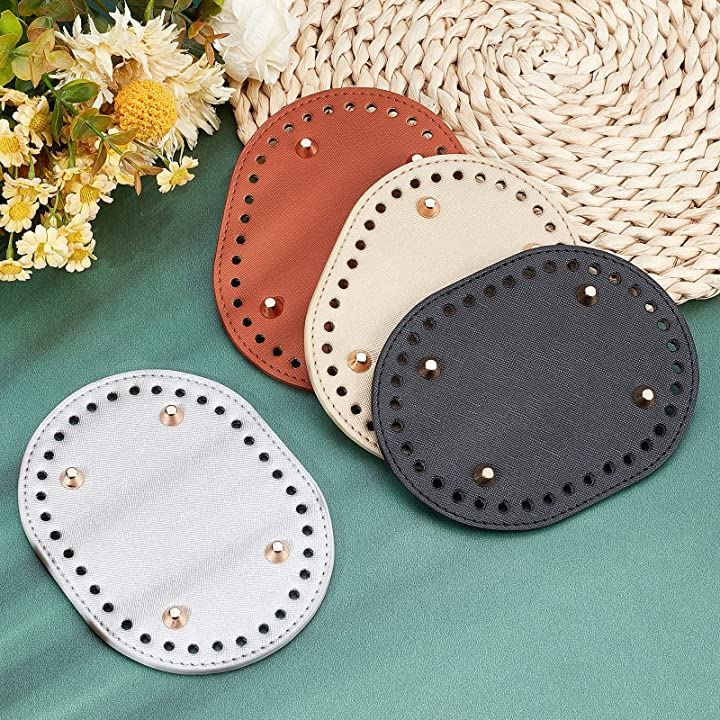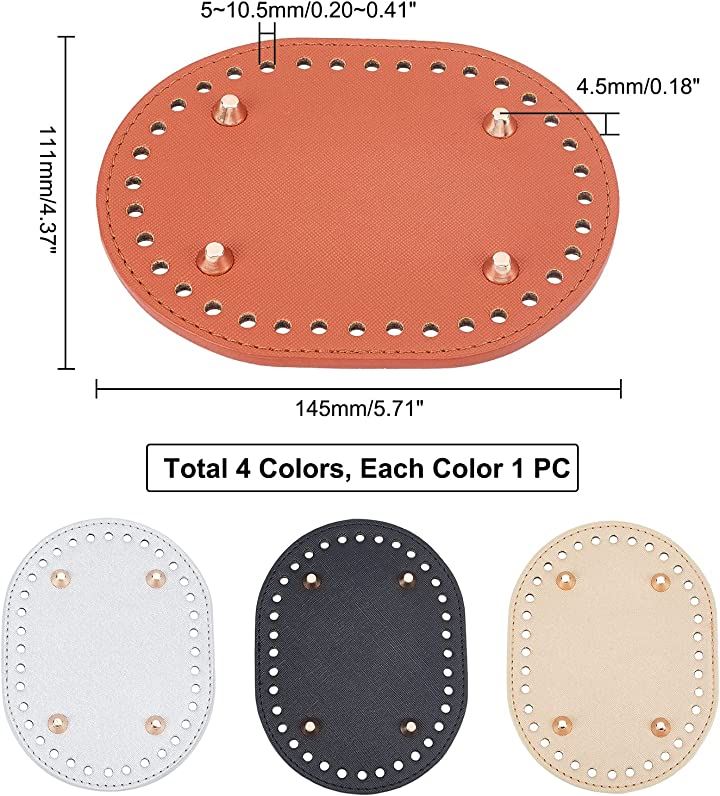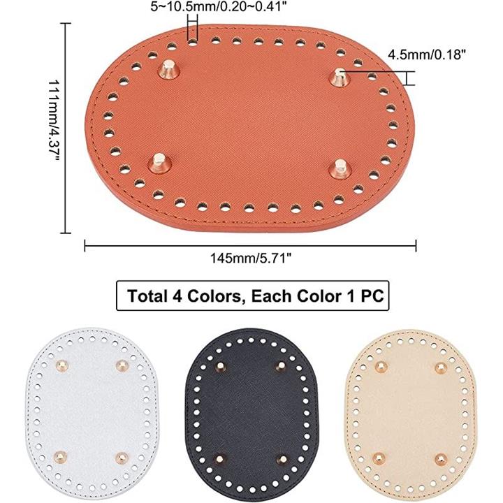 4枚セット バッグボトム 楕円底 4色 手芸 レザークラフト 底釘付 5.7 x4.3インチ