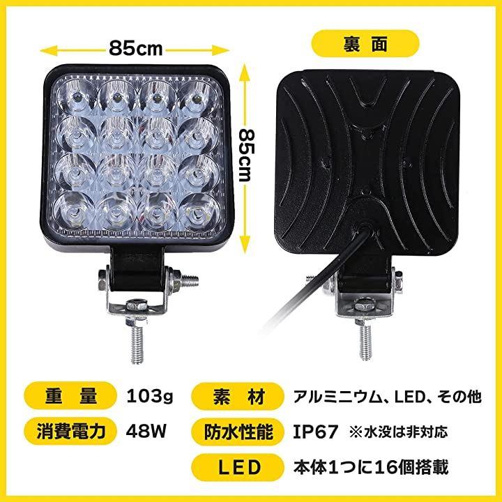 LED ワークライト 12V/24V 兼用 48W 6000K ホワイト 防水 作業灯 デッキライト 投光器 車幅灯 照明 トラック