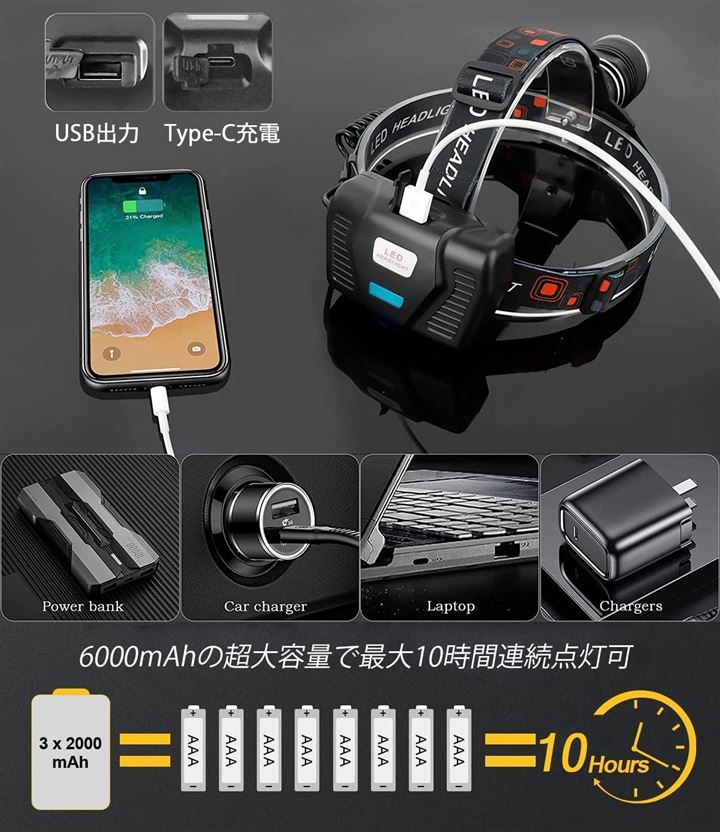 互換品 ヘッドライト 充電式 led ヘッドランプ