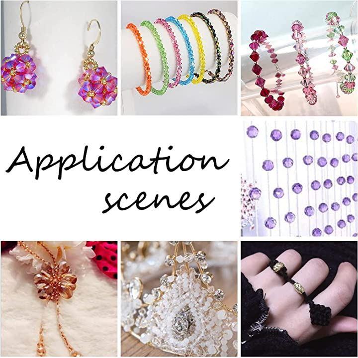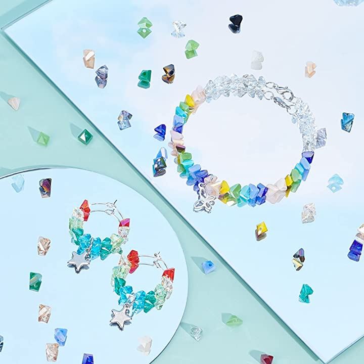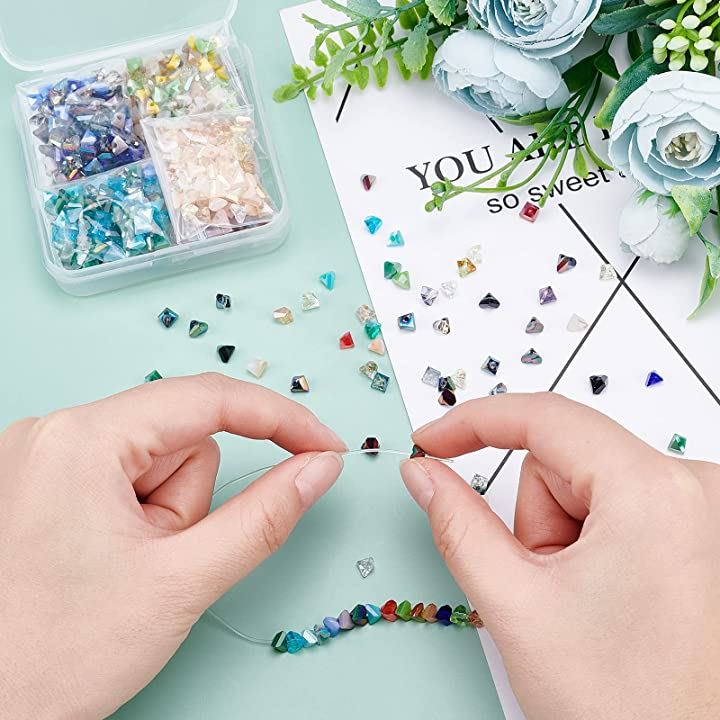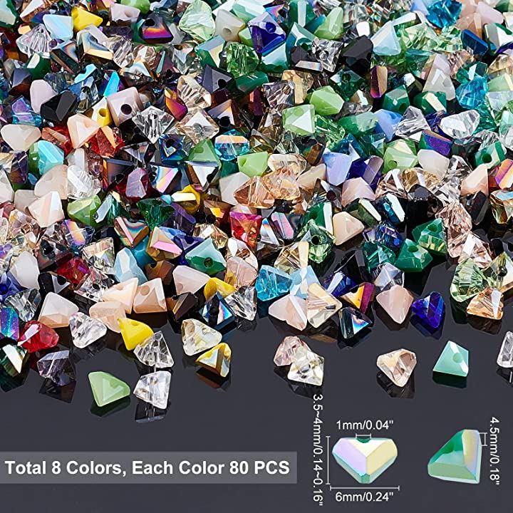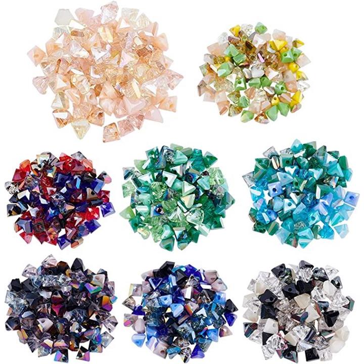 約640個8色 ガラスビーズ 4mm クリスタルビーズ 多面三角形ビーズ カットビーズ 3.5~4x6mm、穴:1mm