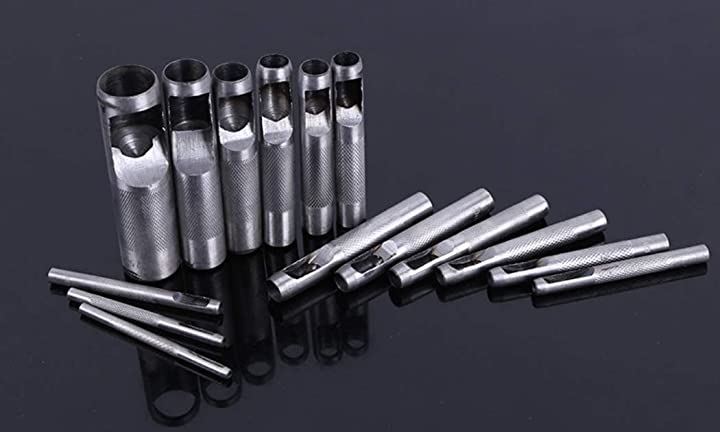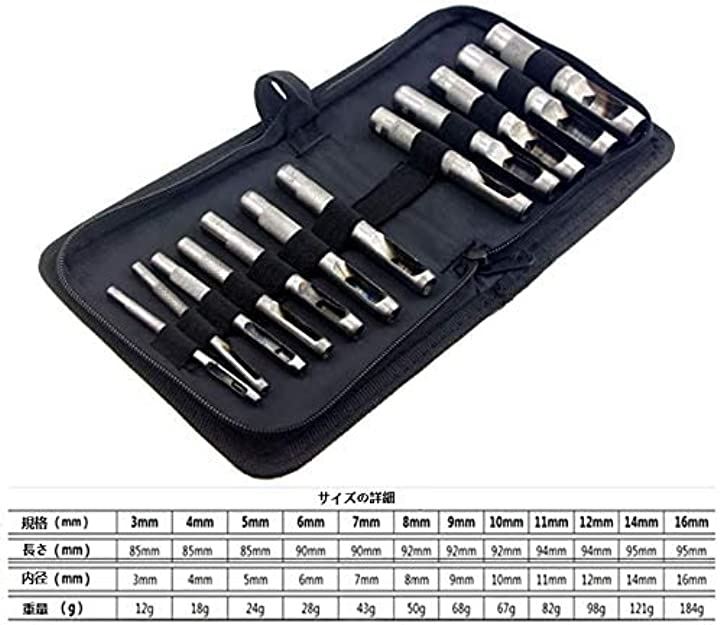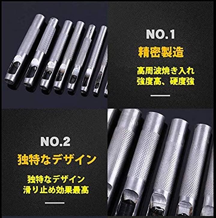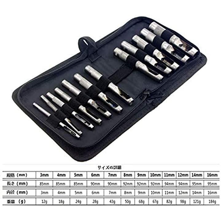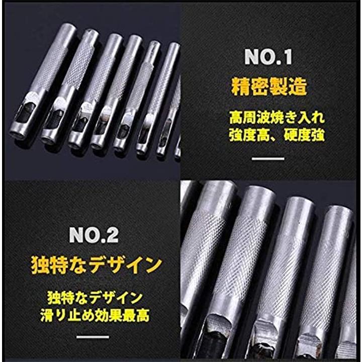 レザークラフト穴あけ ベルレザークラフト 工具セット トポンチ レザーパンチ ベルト 3-16mm ゴムハンマー 腕時計 ポンチ穴あけ 12本セット