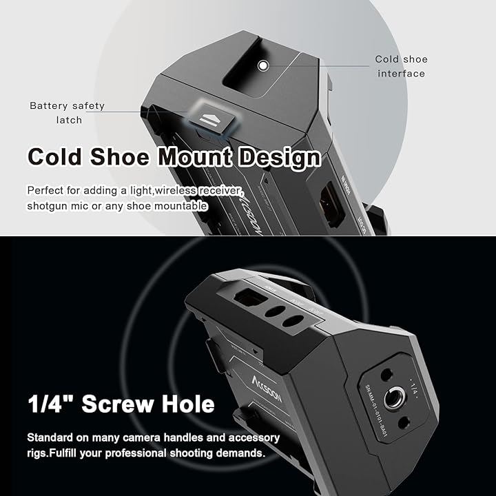 Accsoon M1は、1/4インチのネジ穴とコールドシューマウントを備えており、ライト、ワイヤレスレシーバー、ショットガンマイク、またはマウント可能なものを追加して、プロの射撃要求を満たします。