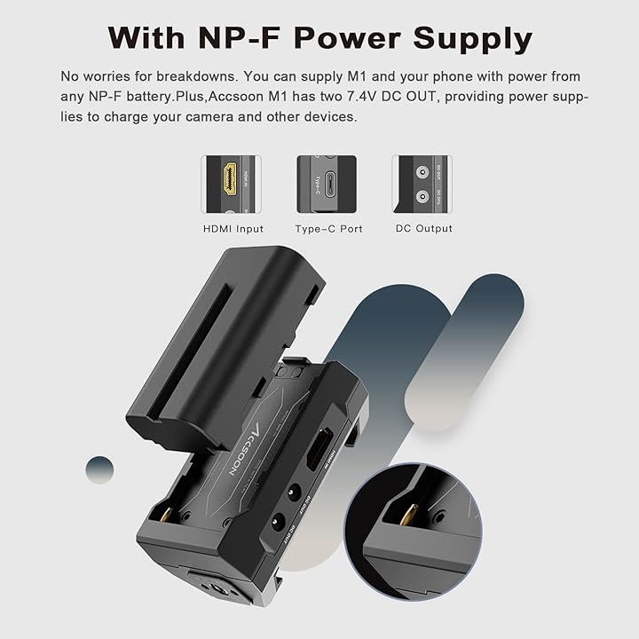 さらに、AccsoonM1には2つの7.4VDC OUTがあり、カメラやその他のデバイスを充電するための電源を提供します。