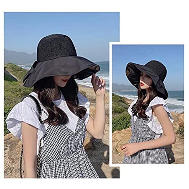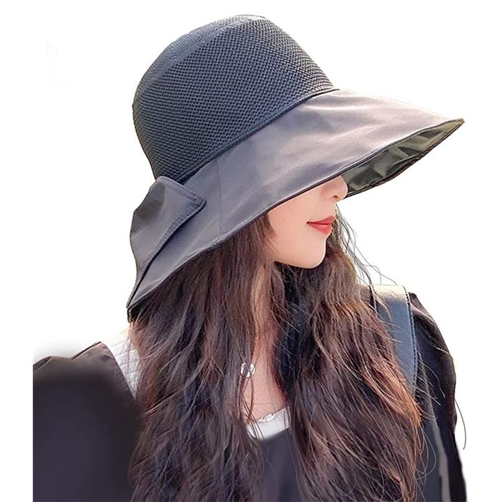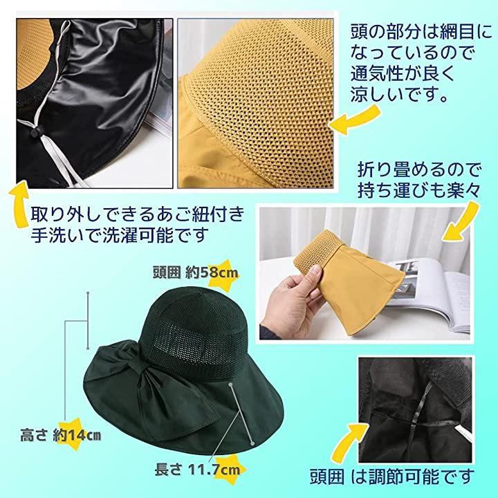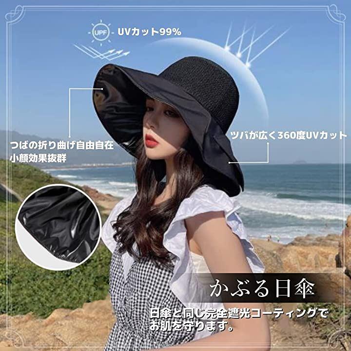 帽子 レディース 夏用 ハット日よけ帽子 紫外線対策抜群 日傘と同じ生地素材を採用 リボン付きブラック