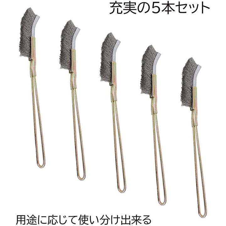 ステンレス ワイヤーブラシ 5本セット ブラシ先曲がり J型 ハンティ
