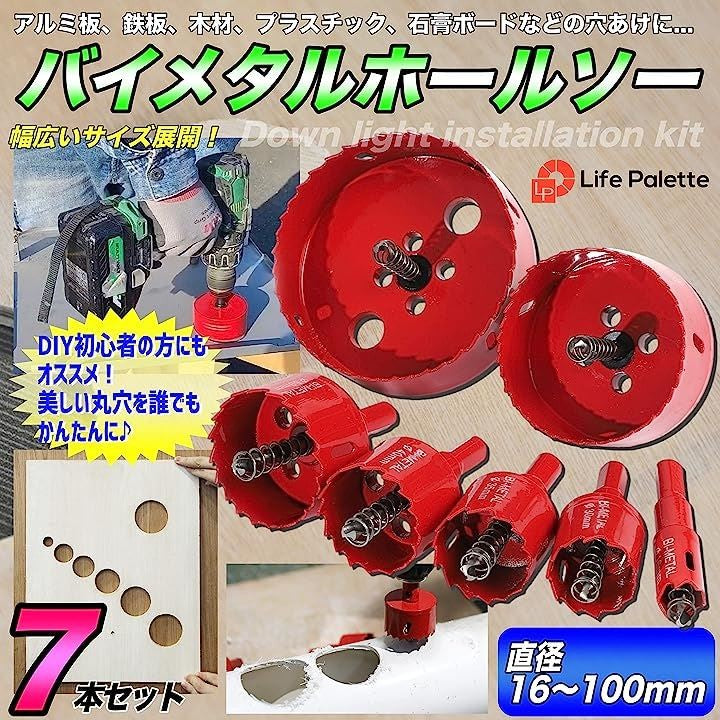 バイメタル ホールソー ホルソー セット 穴あけ 切削 工具 7本セット