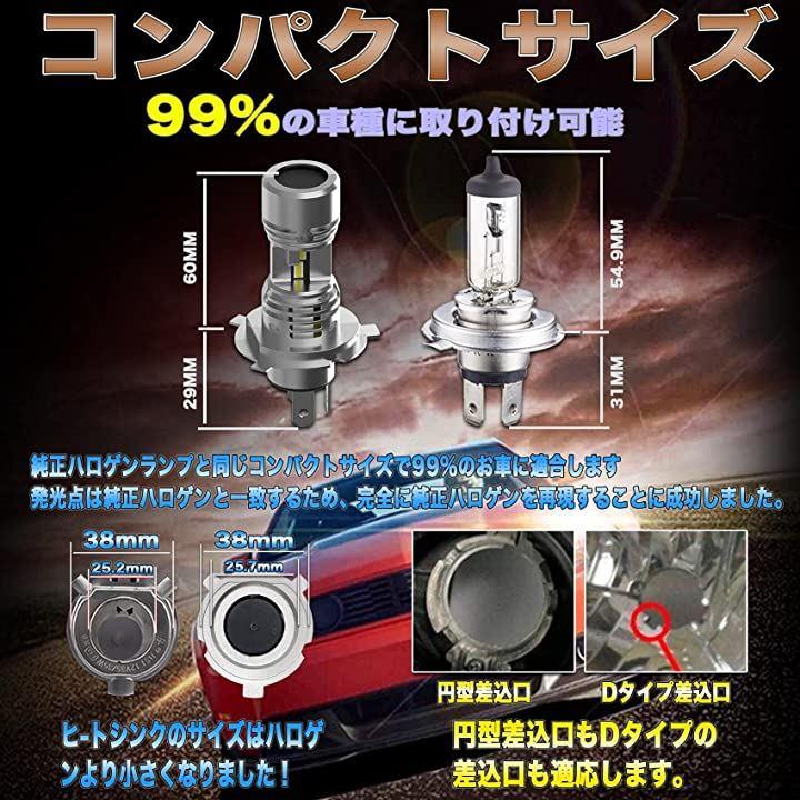 ・⭐「商品 適用スペック」 バイク/車用 LED ヘッドライト、ノイズキャンセラー内蔵、無極性設計、定電流保護回路搭載 / 型番:H4 / 色:ホワイト(6500K) / ワット数:60W / 明るさ:16000LM / セット数: 2個 / 電圧:AC12~24V /DC11~48V / 動作環境:-40℃~+100℃ / 使用寿命:50000時間以上 / 防水等級:IP67 /