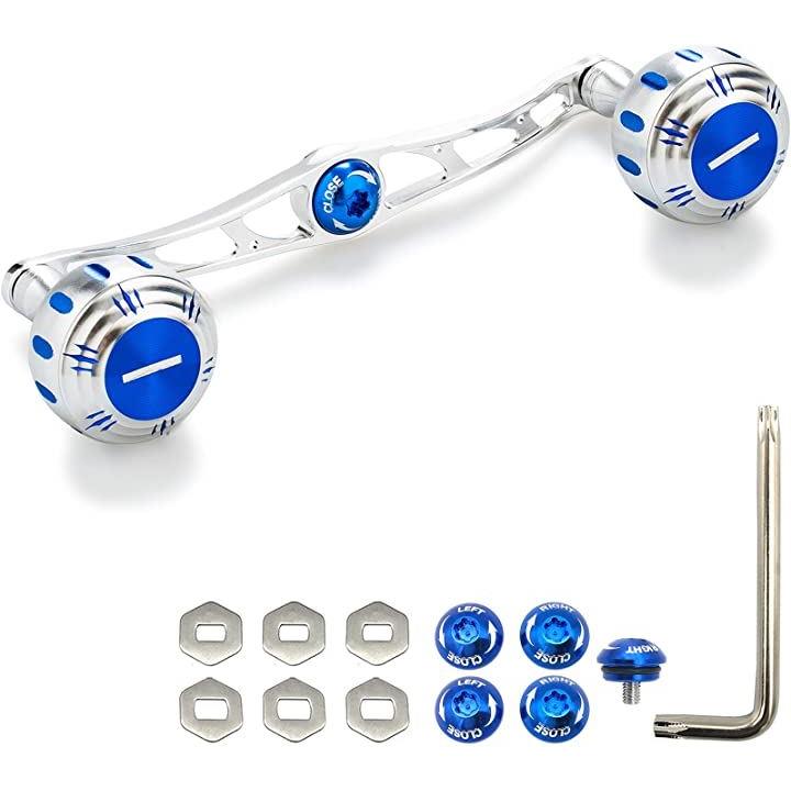 高精度CNCマシンカット加工高品質70シリーズアルミニウム素材で軽く、強く仕上がっているダイワ(Daiwa)、シマノ(Shimano)、アブかルシア(AbuGarcia)に取り付けが可能人体工学と滑り止め設計でのグリップ感が体感できる、質感も良くハンドル部のステンレス材質ベアリングも精度良く回転、手にフィットするノブに変えることで、コントロール性能が上がり、一日中巻いても疲れない。