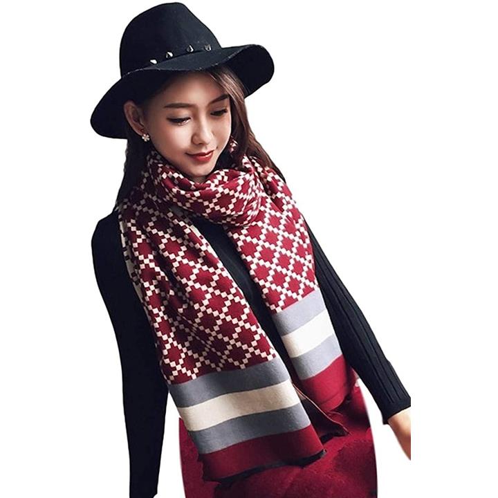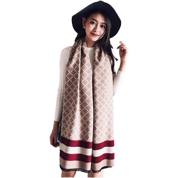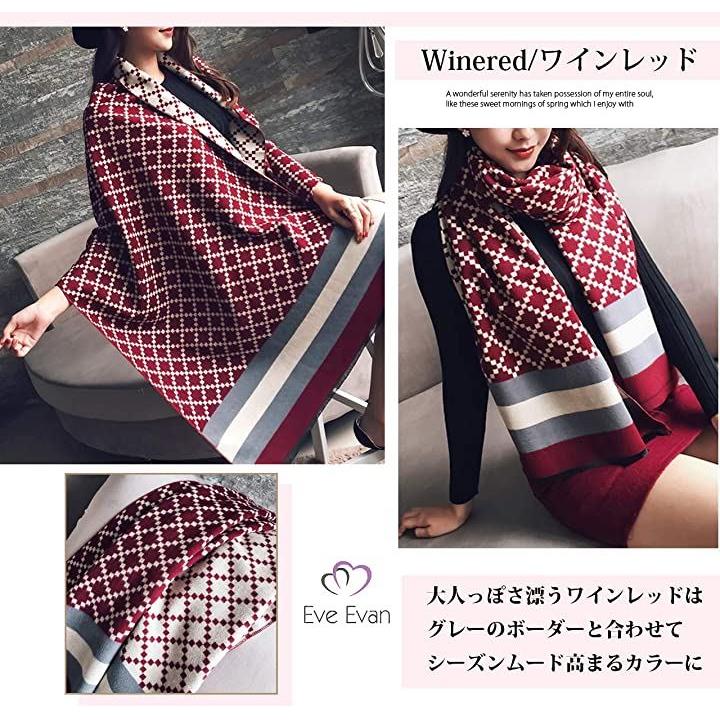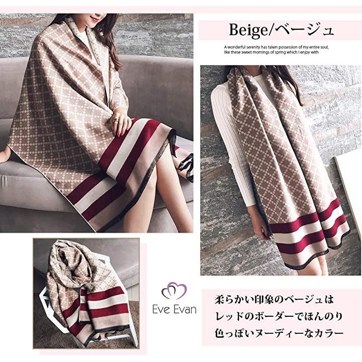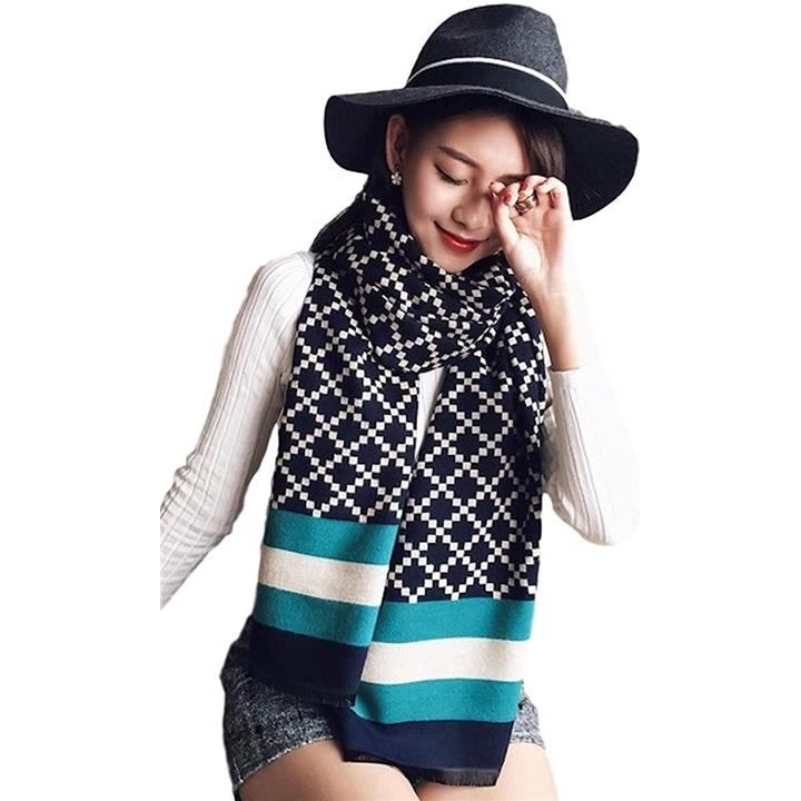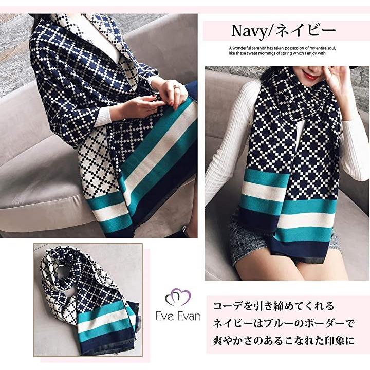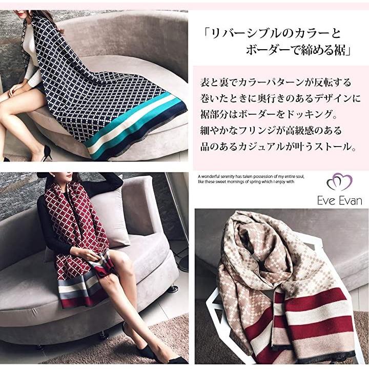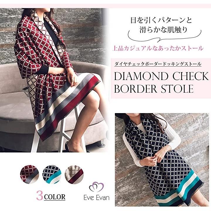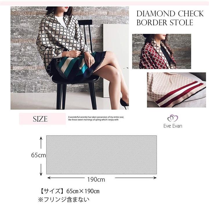 ストール ダイヤチェック ボーダー 大判 リバーシブル カシミヤ タッチ 幾何学模様