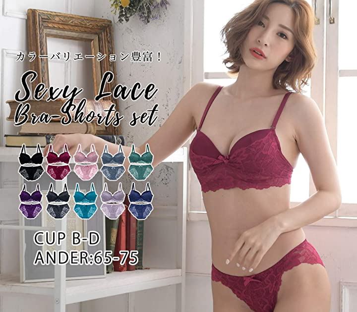 「Laulea Akoakoa」 レディース ブラ ブラジャー ショーツ 上下 セット カラバリ シンプル レース 勝負 下着 (エンジ C65 ) |
