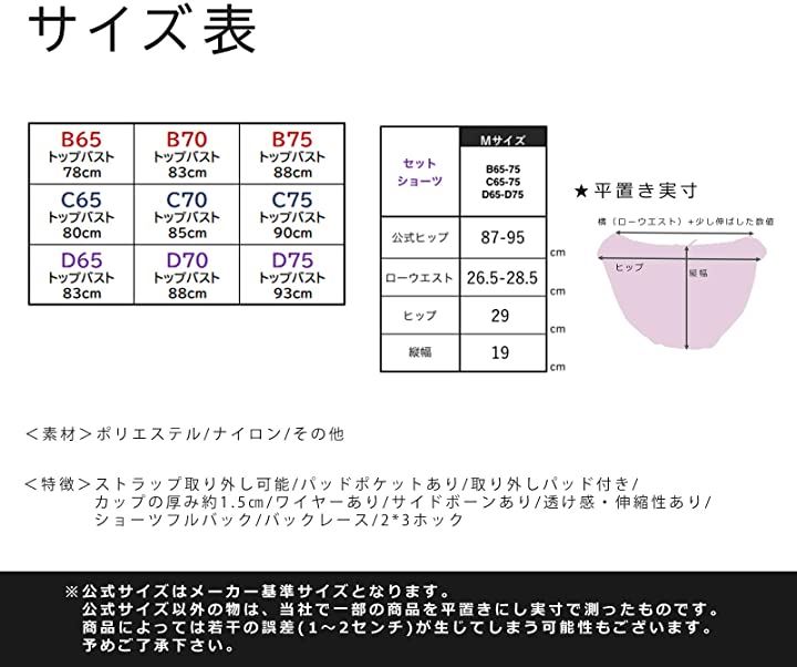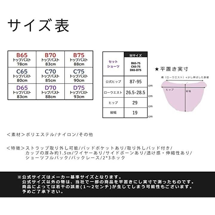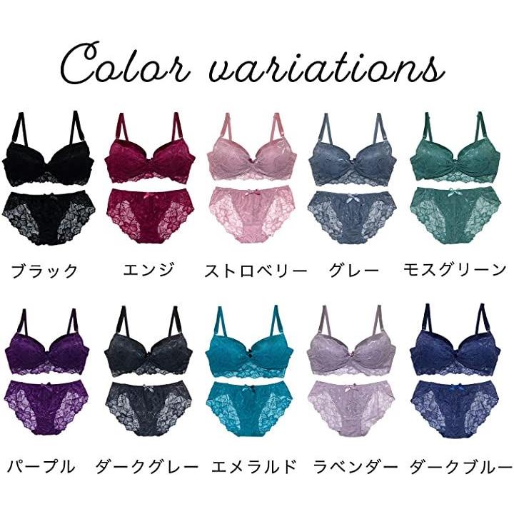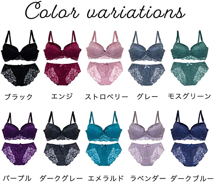 ・カラーは、エメラルド・エンジ・グレー・ストロベリー・ダークグレー・ダークブルー・パープル・ブラック・モスグリーン・ラベンダーの10色から、サイズはB65・B70・B75・C65・C70・C75・D65・D70・D75の9サイズからとなっております。