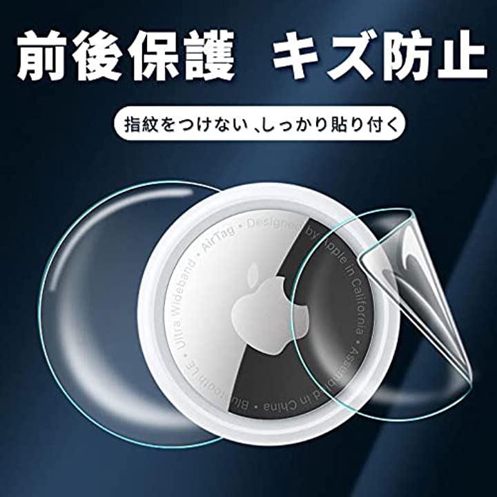 「AirTag専用TPU保護フィルム付き」油分の付着、指紋による汚れ、水滴などの汚れが簡単に拭き取れるAirTag専用TPU保護フィルムがセットで付属。。AirTag本体にぴったり貼れるジャストサイズになっており、前面用フィルム+背面用フィルム+ドライシート+ウエットシート各1枚を使用して綺麗に貼り付けることができます。