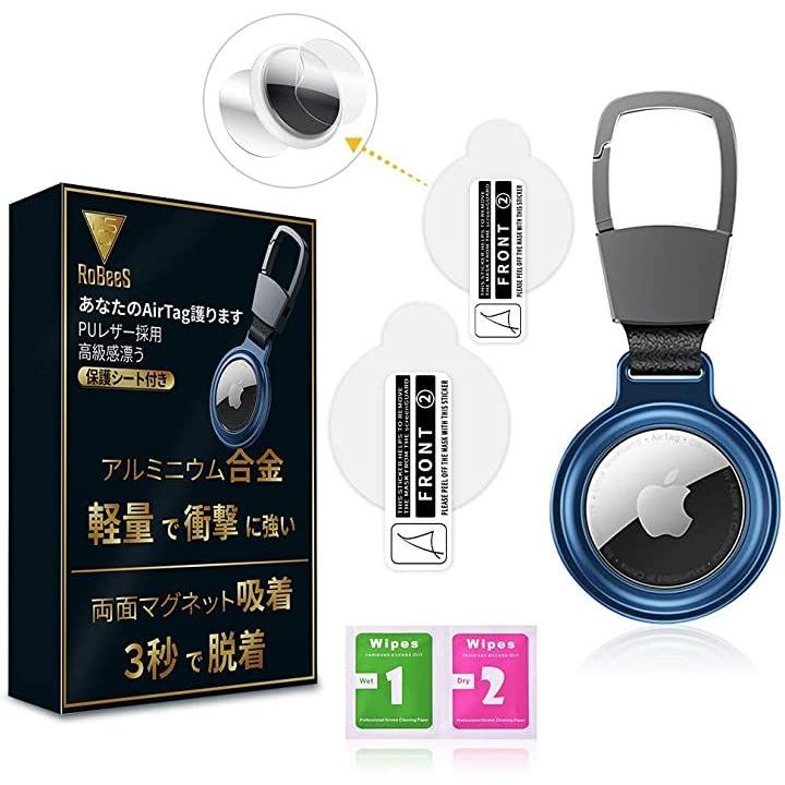 「RoBeeS」(日本企画)6色Airtag用保護ケースAirtag用保護フィルム付きアルミニウム合金製マグネット吸着式軽くて薄いエアタグキーホルダーエアタグアクセサリー耐衝撃全面保護子供ペット追跡紛失防止