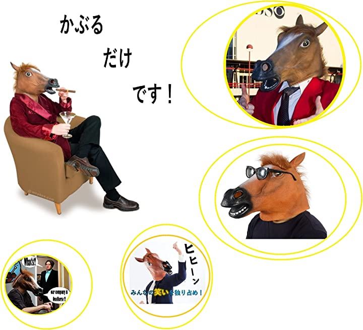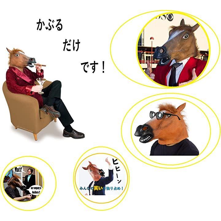 馬マスク ハロウィン 仮装大会 コスプレ 被り物 お面 仮面 ラテックス製 ウマ