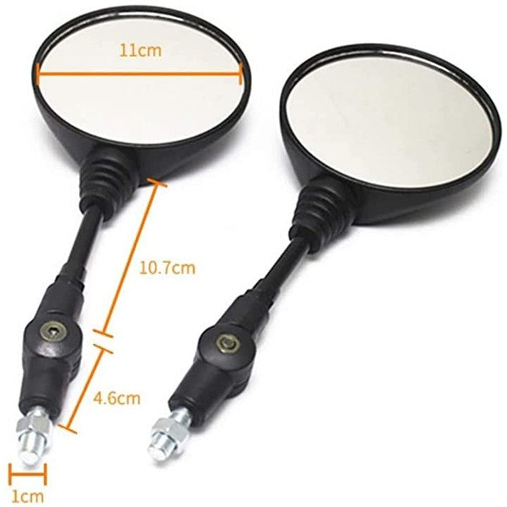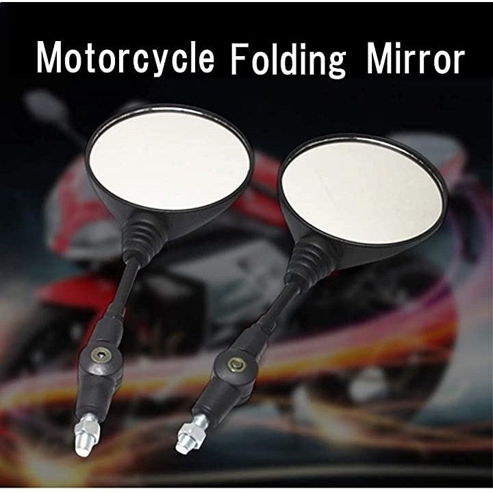 バイクミラー 汎用 丸型 折りたたみ ネジ径 10mm 左右セット 可倒式 丸ミラー ブラック