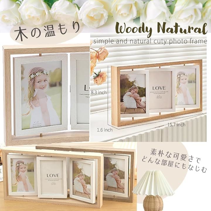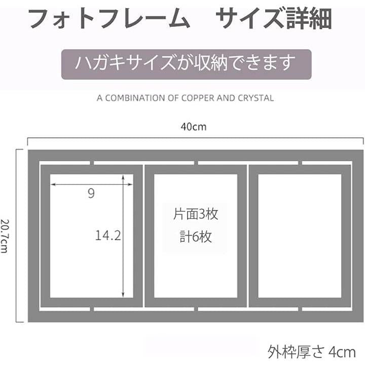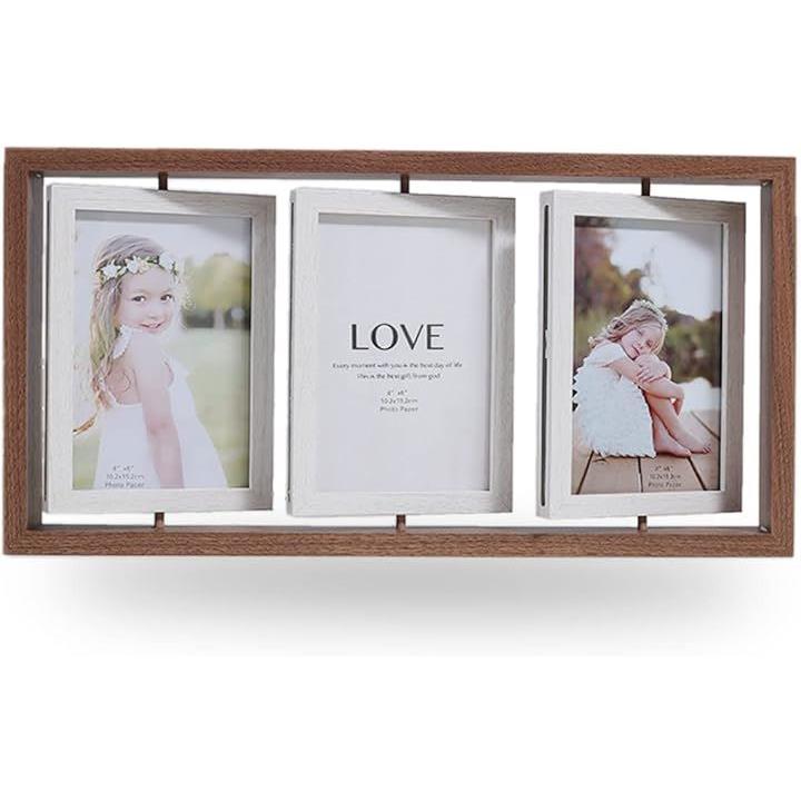 フォトフレーム 写真立て おしゃれ 片面3枚 両面6枚 回転 卓上 ハガキサイズ ブライダル 複数枚 多面
