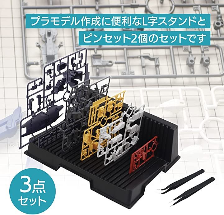 ランナースタンド L字型 ガンプラ プラモ ピンセット2個付き パーツ立て