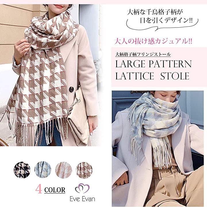 千鳥格子 ストール 大柄 バイカラー リバーシブル 大判 両面 レディース