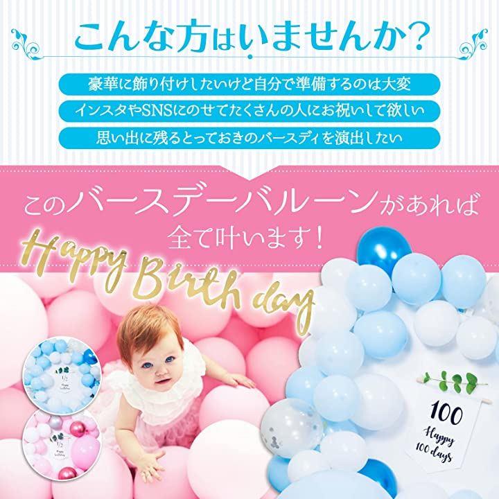 ・優しく高級感のあるバルーンと飾りでボリュームデラックスセット(タペストリー付き)可愛くてインスタ映え。カラーも2色展開のため、女の子にも男の子にもオススメ。「空気入れ付き」でコスパの良いフルセット。