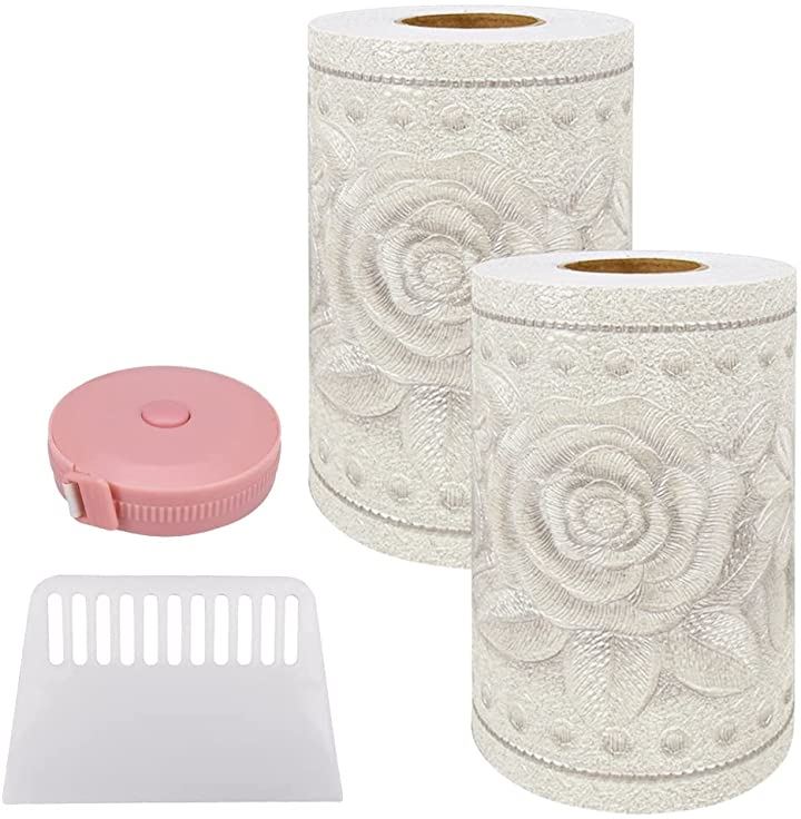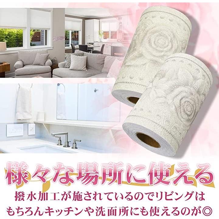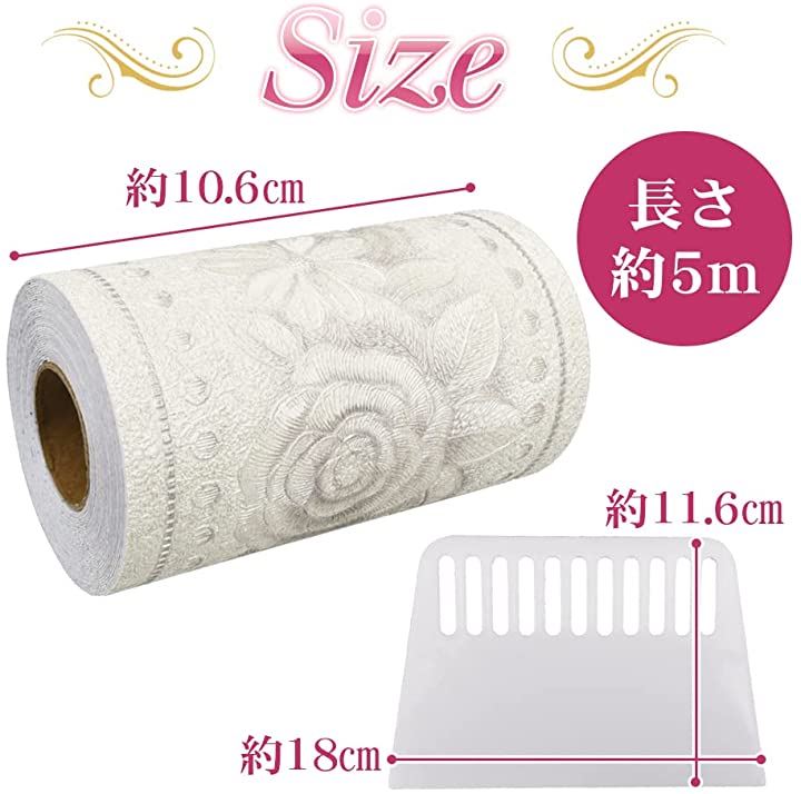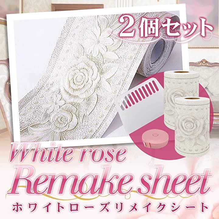 リメイクシート ホワイトローズ トリムボーダー 2個セット ヘラ メジャー付属 簡単貼り付け 模様替え DIY