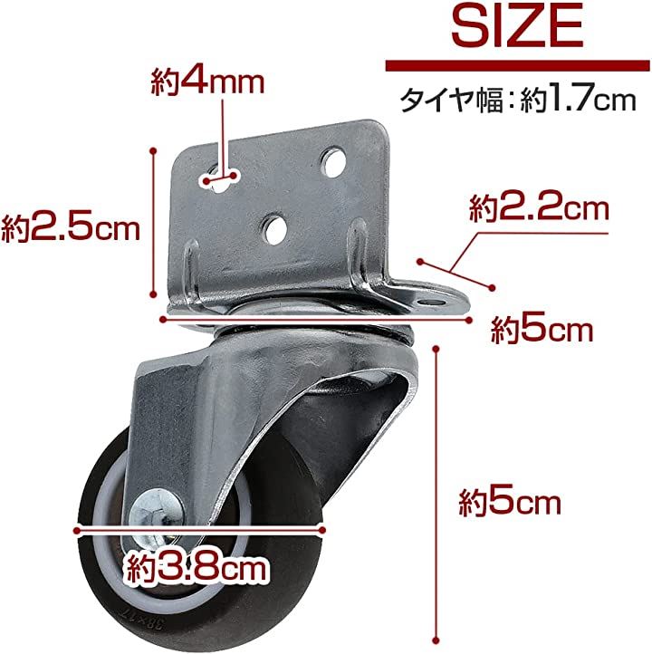L型キャスター 後付け車輪 2種セット 自在車 ストッパー付き 静音仕様 家具移動 ネジ付属
