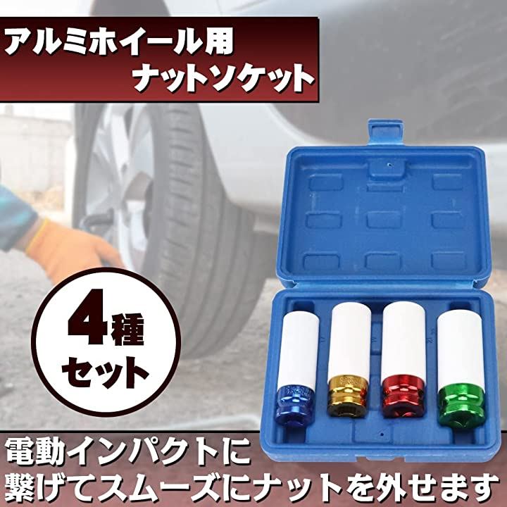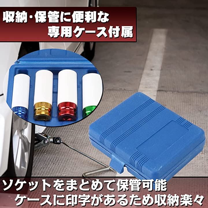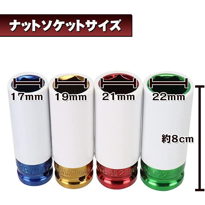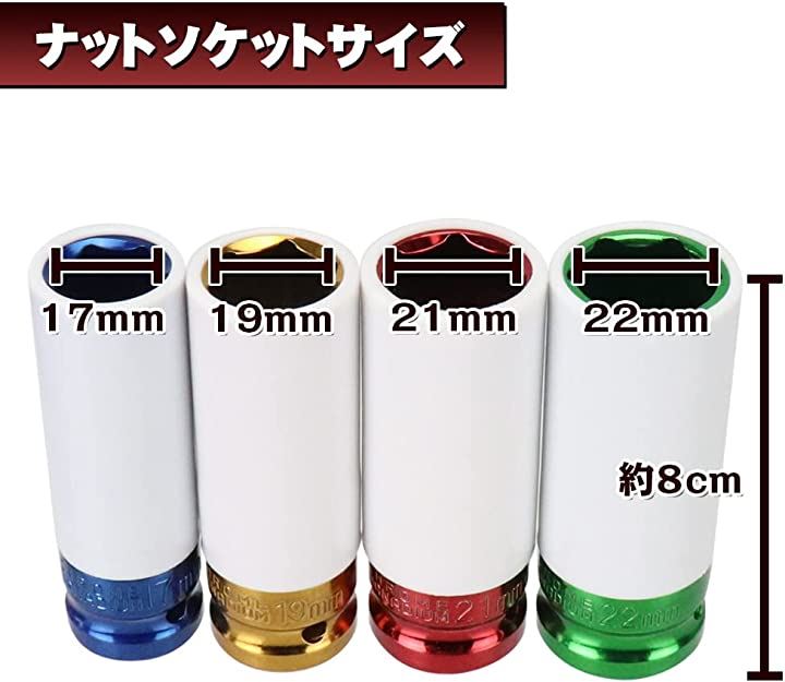 インパクトレンチ ソケット ホイールナット タイヤ交換 17mm/19mm/21mm/22mm ケース付き