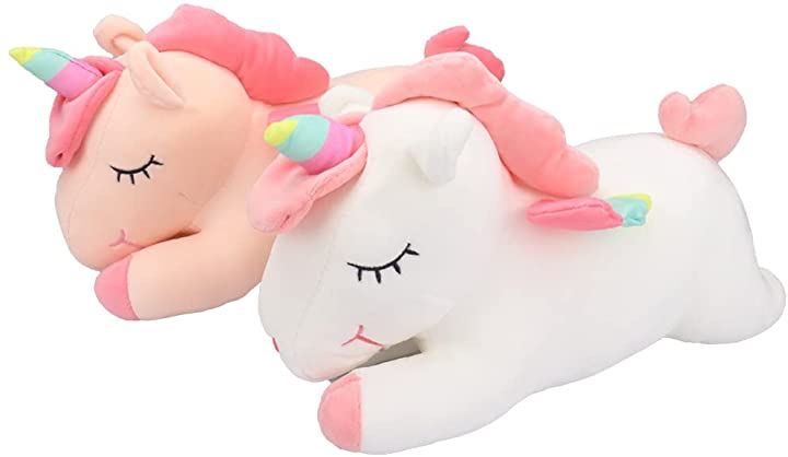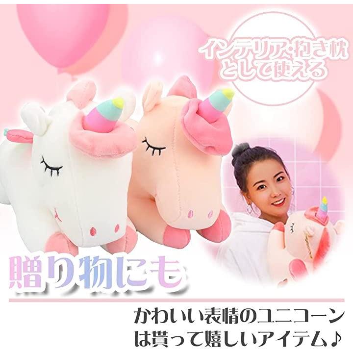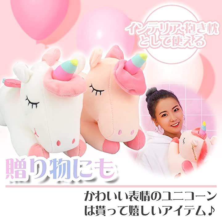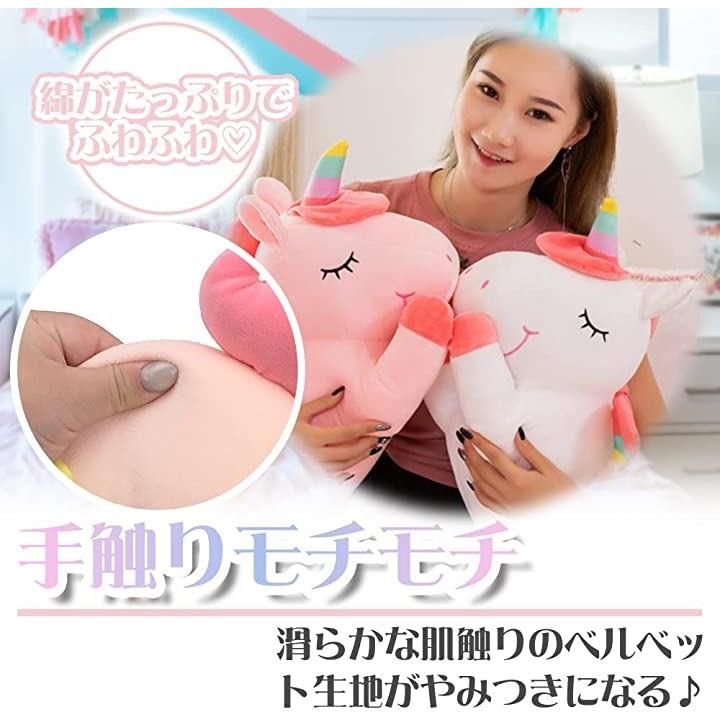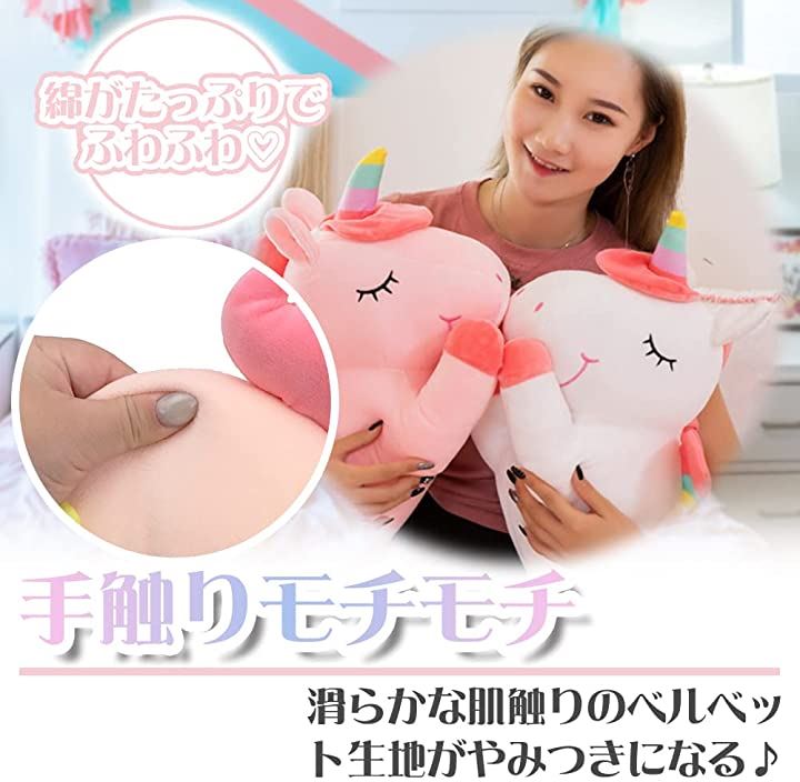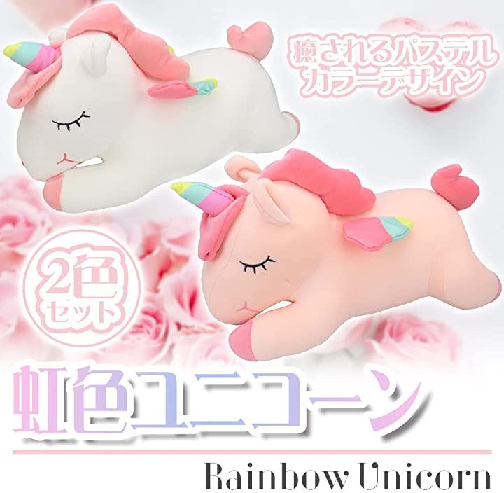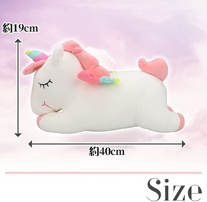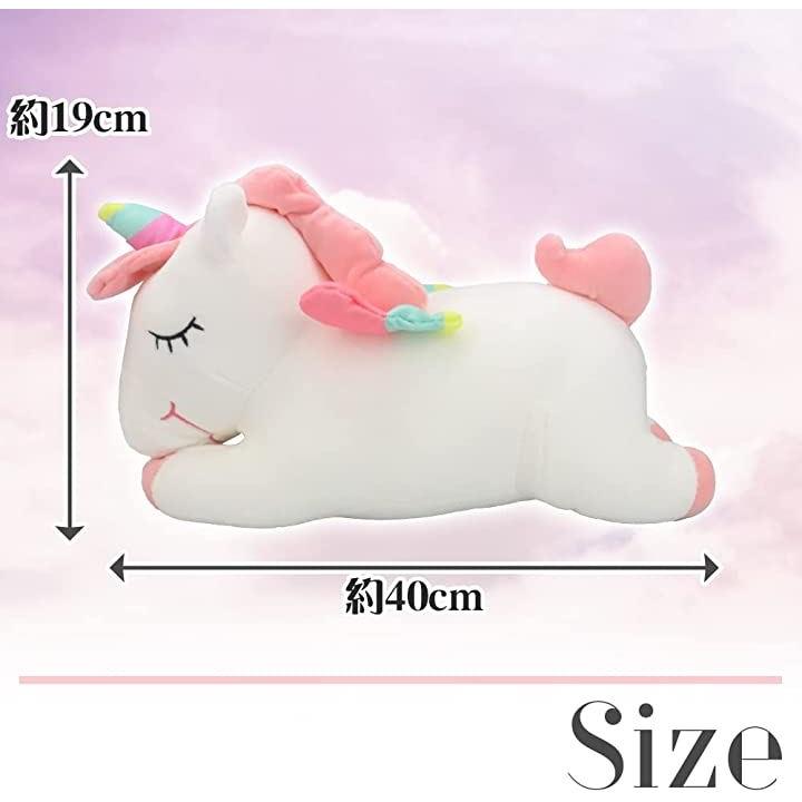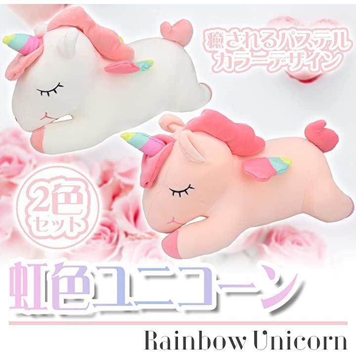 ユニコーン レインボー ぬいぐるみ 抱き枕 40cm ピンクxホワイト