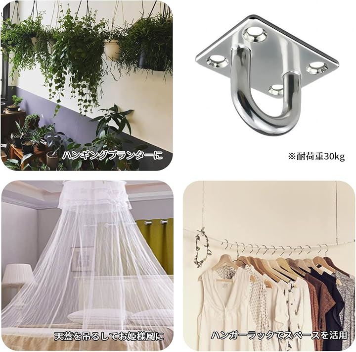 天井 フック 吊り下げ 壁 アイプレート ステンレス 4個セット